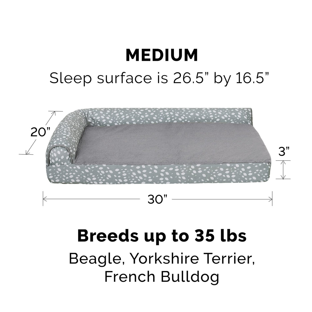 Pamper Your Pet With A New Furhaven Plush & Almond Print L Chaise Dog Bed! The Sleep Surface Is Lined With Soft Plush Faux Fur For Cozy Nighttime Snuggles. The L-Shaped Bolsters Support Your Pets Back And Hips, Providing Additional Support. The L-Shape Also Provides The Perfect Nook For Pets That Like To Nest Into Comfort. The Two Raised, Rounded Bolster Ends Allow Your Pet To Lay Their Paws Or Neck On The Pillowed Edge, Helping To Align The Neck And Spine. The Medical-Grade Foam Core Includes A Layered Orthopedic Foam Core Topped With Gel-Infused Memory Foam. Micro Gel Beads Help Keep The Bed Cooler While Memory Foam Conforms To Your Pet'S Shape Providing Superior Support Of Joints And Pressure Points. Gel Foam Has Cooling Properties Reducing The Sleeping Surface By 1 Or 2 Degrees, Wicking Heat Away From Your Pet. The Zippered Cover Is Easily Removed And Machine Washable For Your Convenience. Low Profile, Step-On Design For Easy Access By Older Or Disabled Pets. Easy To Clean. Cover Care: Remove From Core Before Washing (See Seam Label For Fabric Care Instructions). Foam Care: Cooling Gel Foam Is Highly Absorbent. Spot Clean With Mild Soap Or Enzyme-Based Cleaning Spray. Rinse But Do Not Soak Or Submerge. Press Out Moisture With A Dry Towel And Air Dry. A Fan May Be Used To Speed Drying. Do Not Wring Or Place In Machine Dryer. Dry Completely Before Use. Not For Unsupervised Use By Animals With Destructive Chewing Behavior.