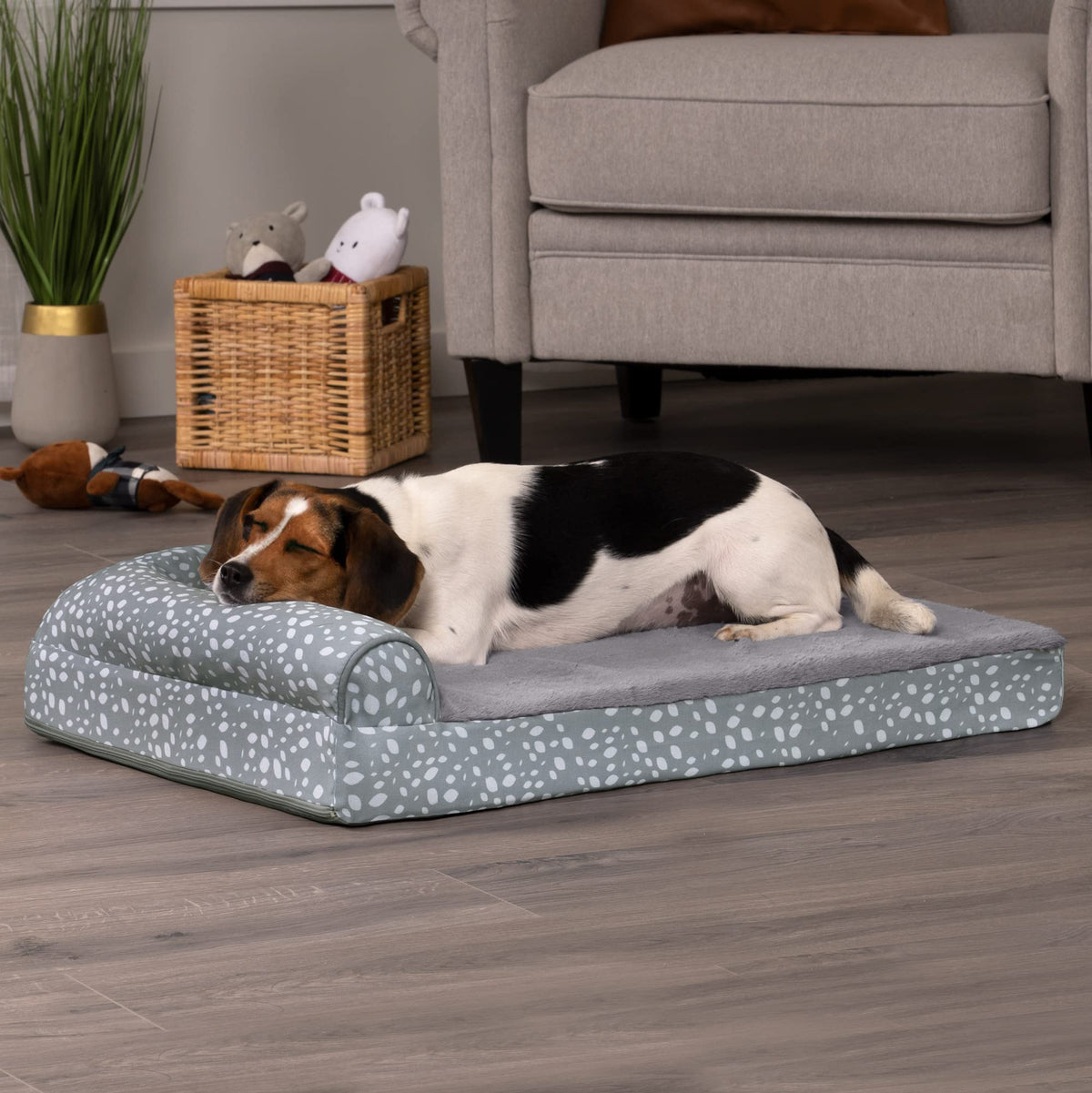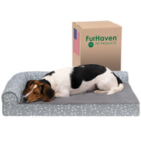Furhaven Supportive Cooling Memory Foam L Chaise Dog Bed With Washable & Removable Cover - Plush & Almond Print - Gray Almonds,