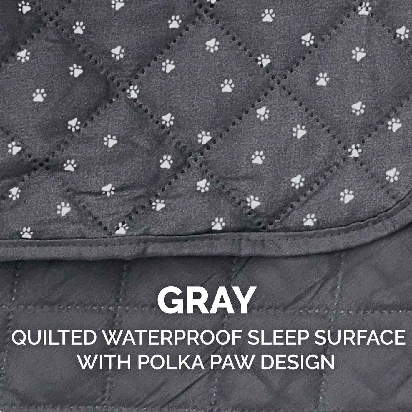Fully reversible, water repellent, soft-quilted furniture protectors help keep pet hair, moisture, and little pet accidents off your furniture. Furhaven Water-Resistant Reversible Polka Paw Print Furniture Protector Cover protects your furniture from your pets daily use with water-resistant coating and pinsonic quilting. Pinsonic quilting is a thread-free, durable method of electronically bonding the water-resistant fabric with ultrasonic heat; no holes are sewn maximizing water resistance. Our machine washable reversible cover is easily secured with no-fuss cushion anchors and sturdy elastic bands. Furhaven quilted-fabric furniture covers let your dog or cat lounge in their favorite spots without putting any little pet-messes directly on your furniture.