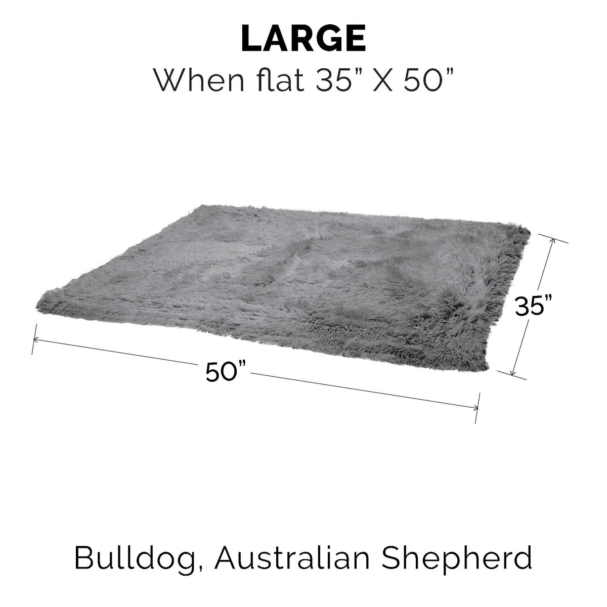Q: What are the dimensions of the large Furhaven Dog Blanket?A: The large Furhaven Dog Blanket measures 50 inches in length, 35 inches in width, and 0.25 inches in thickness.