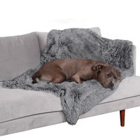 Naps just got a little cozier with the Furhaven Calming Long Faux Fur & Velvet Waterproof Dog Blanket. Featuring oh-so-soft velvet-y fabric surface and luxuriously plush long faux fur fabric, your pet will love snuggling in for a long morning, afternoon, or evening snooze (possibly all three?). Easy to clean; simply throw in the washer on delicate cycle and tumble dry on low heat until completely dry. Available in a variety of stylish colors, you are sure to find one to blend with your home decor to look fabulous. Your guests won't even realize that the blanket is just for the dogs!