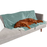 Furhaven Waterproof Throw Blanket For Dogs & Indoor Cats, Washable - Two-Tone Luxe Velvet Dog Blanket - Celadon Green, Extra Lar