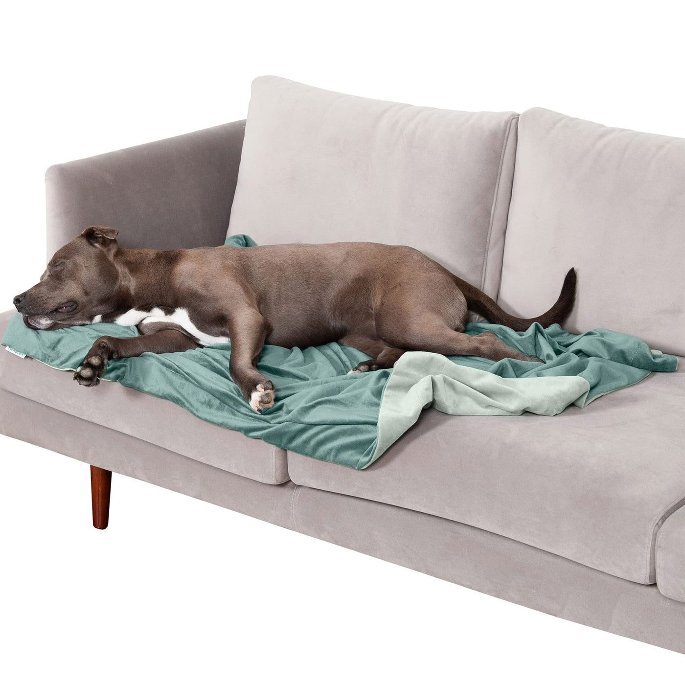 Furhaven Waterproof Throw Blanket For Dogs & Indoor Cats, Washable - Two-Tone Luxe Velvet Dog Blanket - Celadon Green, Large