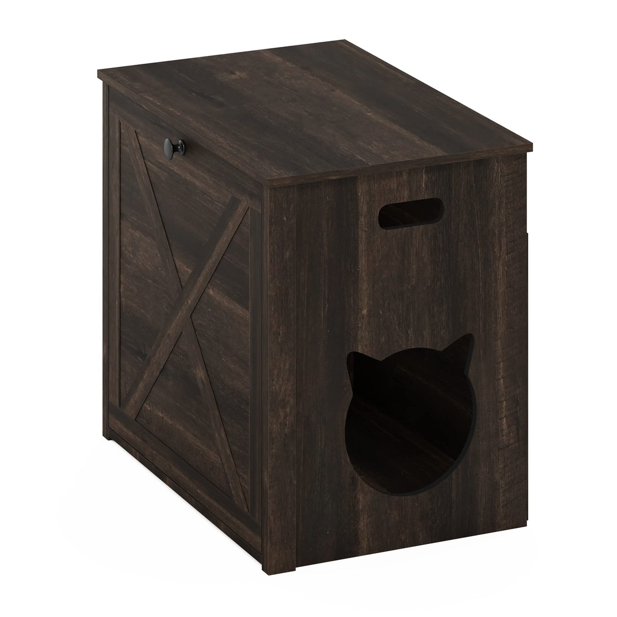 Furinno Peli Small Cat Litter Box Enclosure With Single Door, Ebony