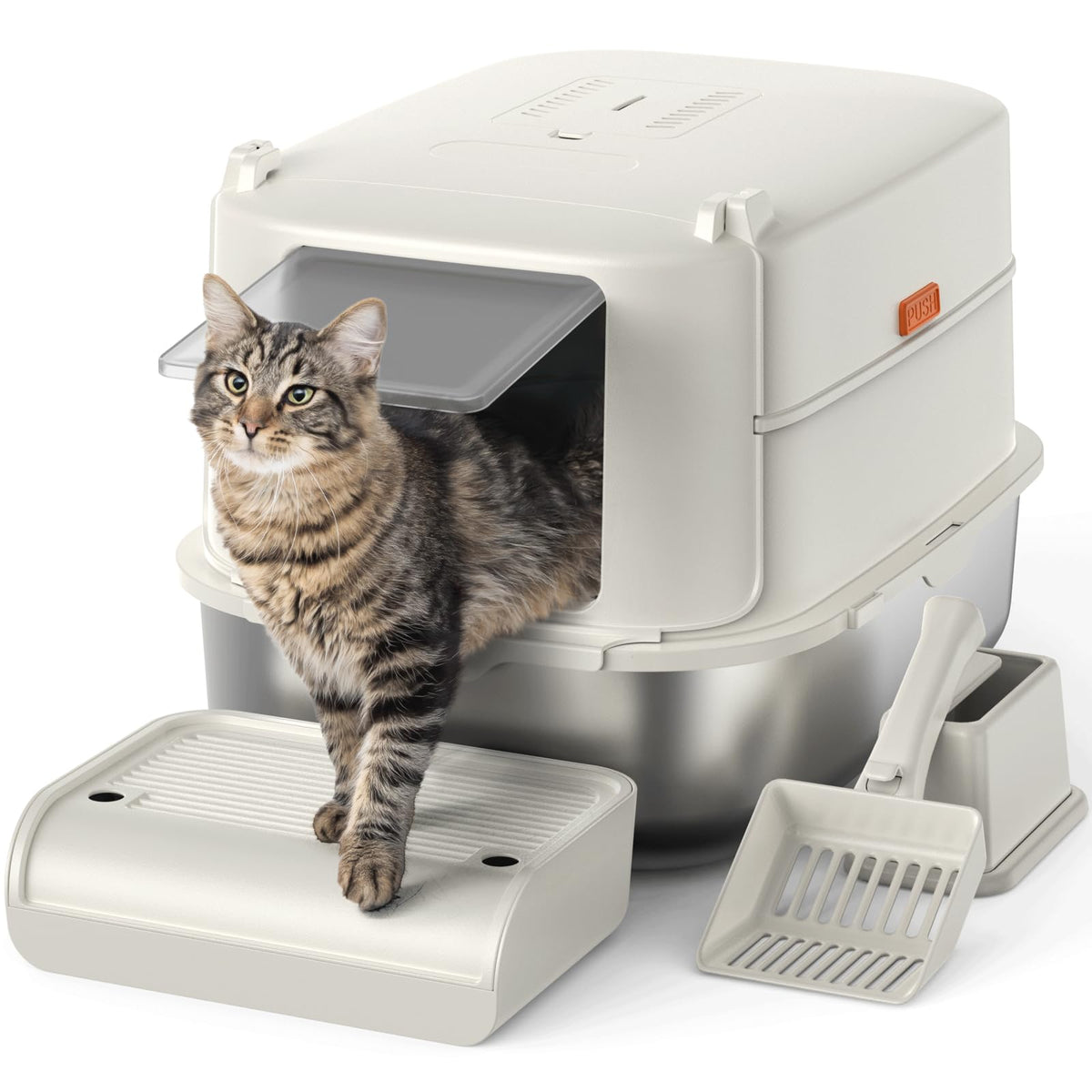 Furkid Stainless Steel Cat Litter Box With Lid, Xl Extra Large Litter Box For Big Cats, Enclosed Metal Kitty Litter Box With Hig