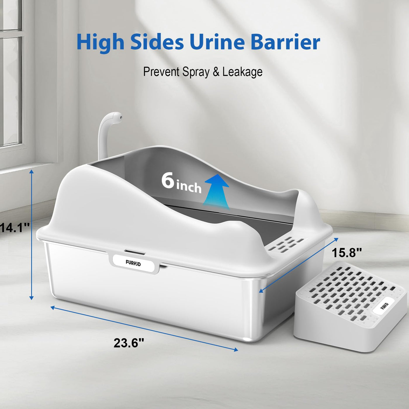 Furkid Stainless Steel Cat Litter Box With Lid, Xl Extra Large Litter Box For Big Cats, High Sided Kitty Metal Pan With Pedal Fi