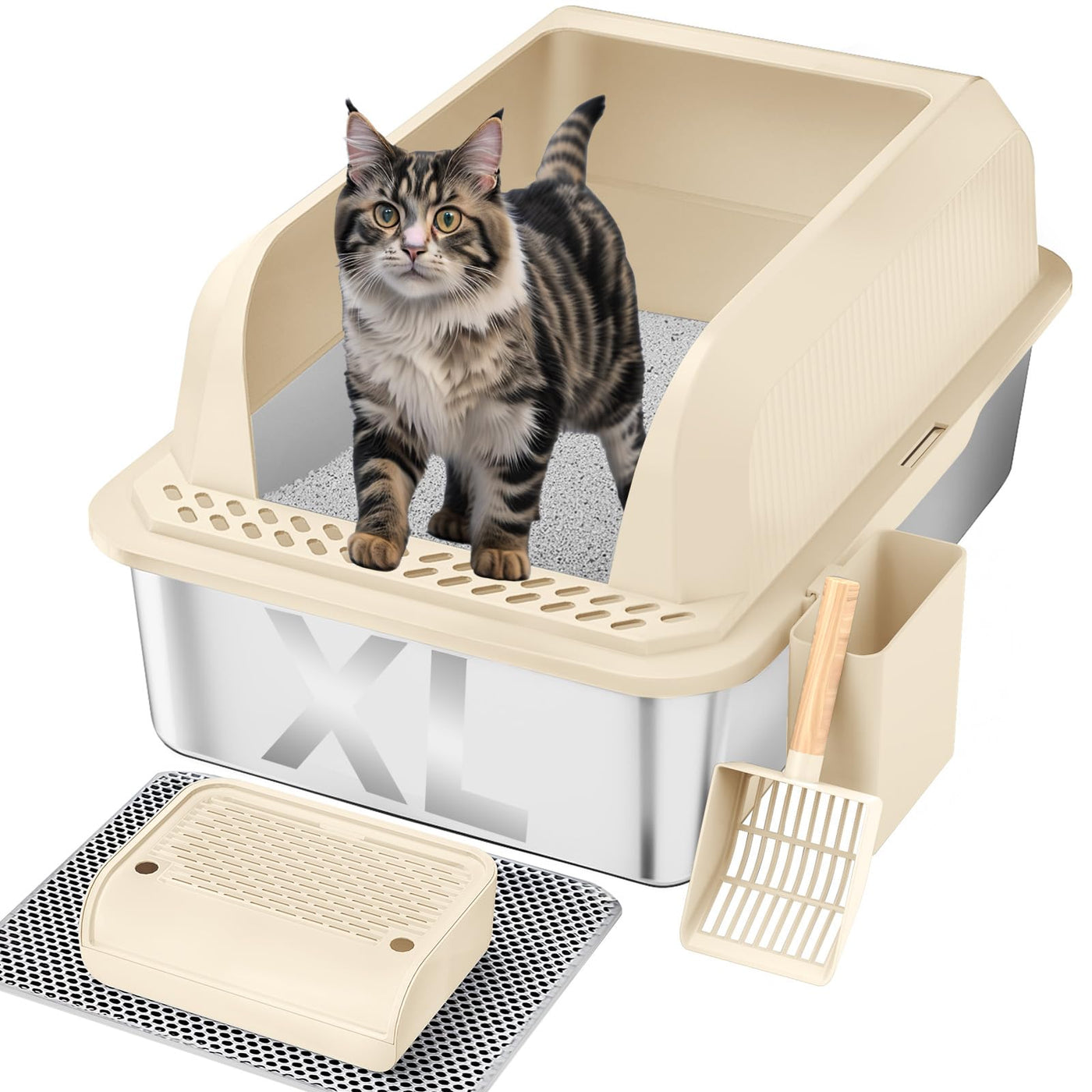 Furkid Stainless Steel Cat Litter Box With Lid, Xl Large Litter Box For Big Cats, Enclosed Kitty Litter Pan With High Sides, Ant