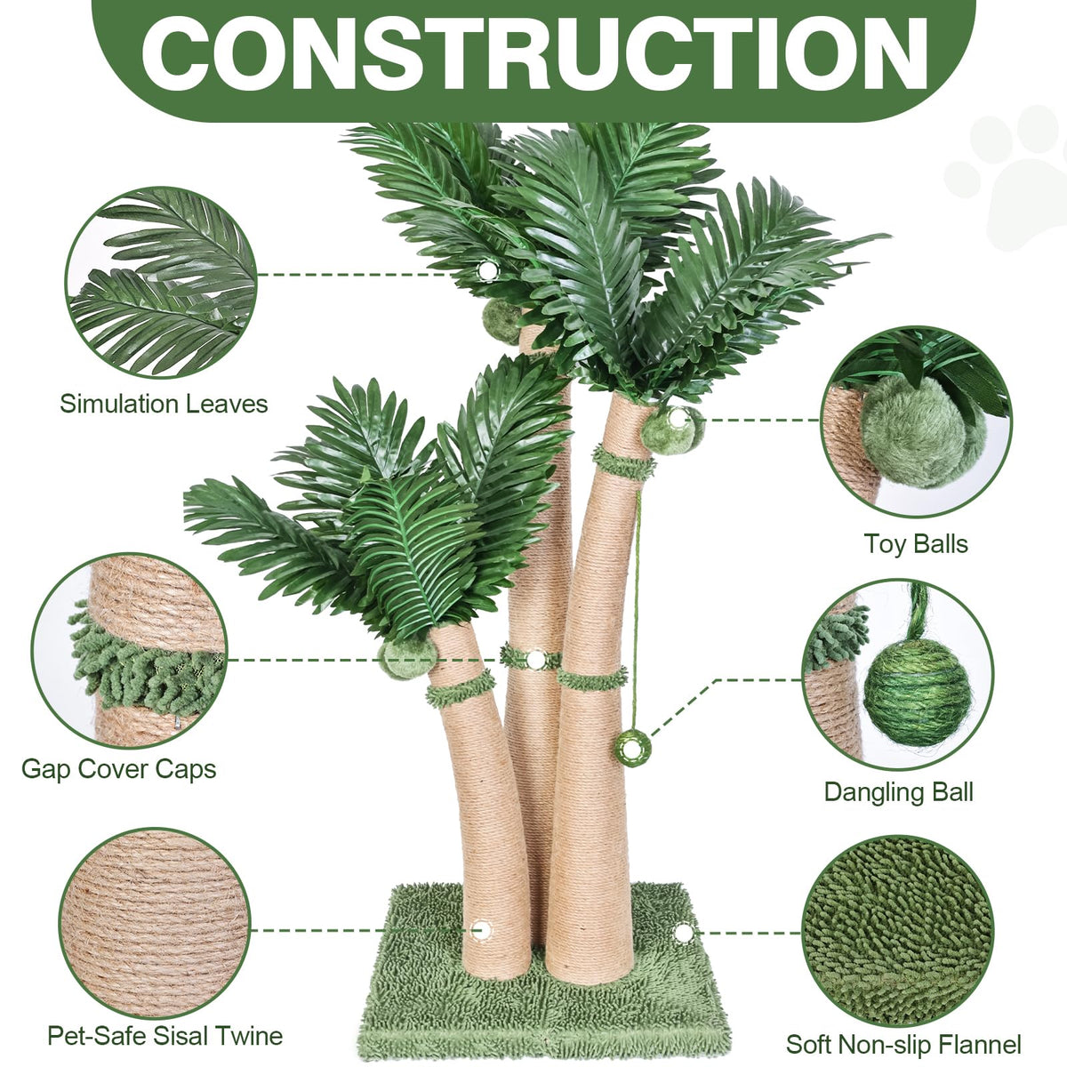 [Tropical Fun For Your Feline] This Palm Tree Cat Scratching Post Adds A Playful And Stylish Touch To Your Home, Giving Your Cat The Perfect Spot To Scratch, Stretch, And Climb. [Durable Natural Sisal For Healthy Claws} Wrapped In Natural Sisal Rope, This Cat Scratcher Post Satisfies Scratching Instincts While Keeping Your Cats Claws Strong And Your Furniture Safe. [40 Tall For All Cats] Whether You Have A Small Kitten Or A Large Cat, This Cat Scratching Posts For Indoor Cats Adults Provide The Perfect Height For Full-Body Stretches And Scratching Satisfaction. [8 Interactive Balls For Endless Fun] Keep Your Feline Entertained With The Built-In Play Balls, Making This More Than Just A Cat Tree Scratching Post-Its An All-In-One Playground. [Easy Assembly & Multi-Combinable] Set Up In Minutes With Included Tools! This Tall Scratching Post For Cats Is Also Multi-Combinable, Allowing You To Customize A Scratching Paradise For Your Pet.