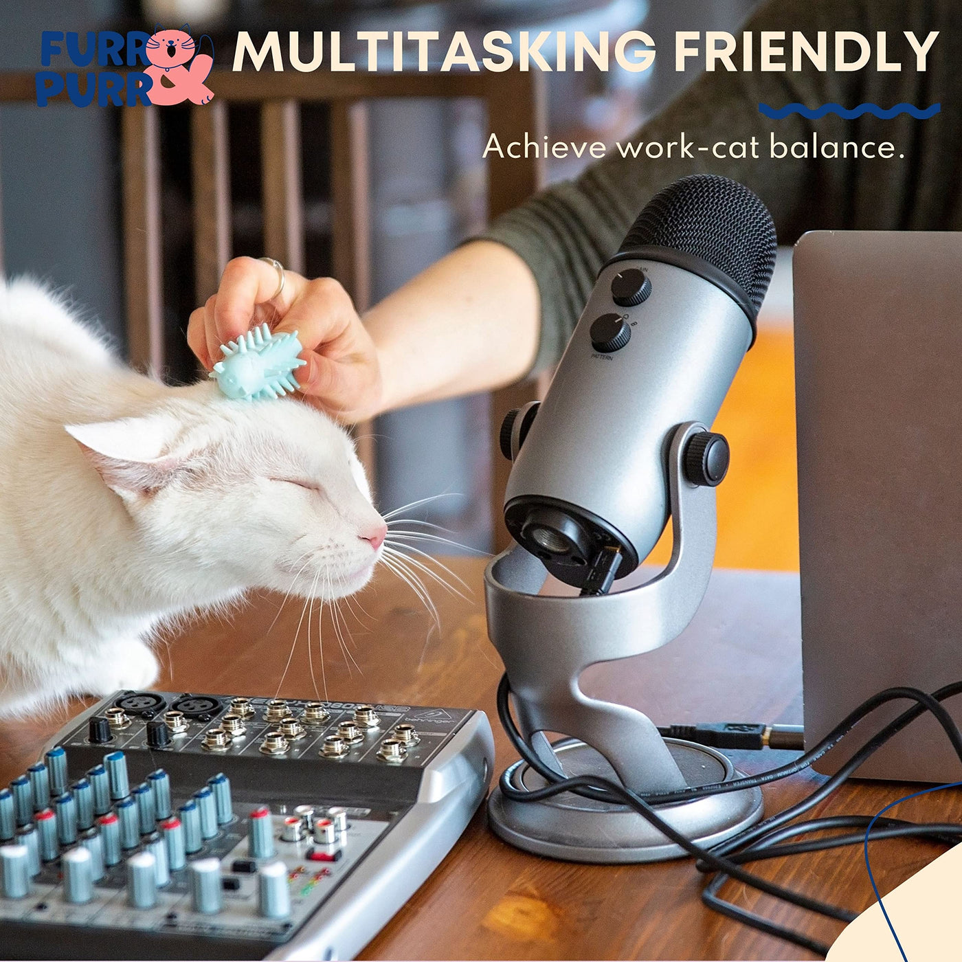 Q: How does the Furr&Purr Cat Brush help with grooming?A: The Furr&Purr Cat Brush is designed to gently remove loose hair, reduce dander, and trap dirt while stimulating your cat's face glands. Regular use promotes healthy skin and a calming experience for your indoor cat.