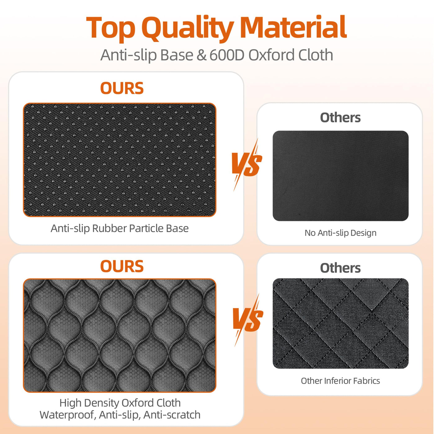Furroom Delivers Happiness To Pets. Let You And Your Pet Enjoy The Journey! Pet Car Seat Covers Make A Great Gift For Every Pet! Why Are Our Dog Car Cover Different? Advantages Of Furroom Dog Seat Cover: *Universal Dimensions: 52 Inches Long * 63 Inches Wide *630D Oxford Cloth, Waterproof And Scratch-Resistant, High-Density Load-Bearing Fiberboard, Tpu Waterproof Membrane *Built-In Sturdy Load-Bearing Plate Extends The Back Seat Into Car Bed *Breathable Clear Mesh Windows And Large-Capacity Oxford Cloth Storage Bag * Hammock With Side Wings, Effectively Protect Your Back Seat And Car Door From Scratches *2 Front Seat Straps To Fit The Seat More Closely And Enhance Stability *Upgraded Metal D-Ring, Provides A Stronger Anchor Point For The Pet Seat Cushion, Ensuring Pet Safety. * Anti-Slip Particles On The Bottom, Will Not Slide Easily And Fit Firmly *100% Waterproof To Protect Your Seat From Mud, Liquids, Etc.