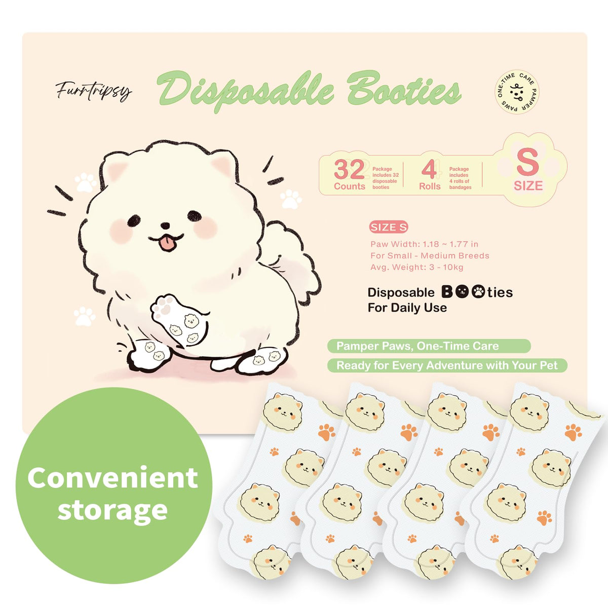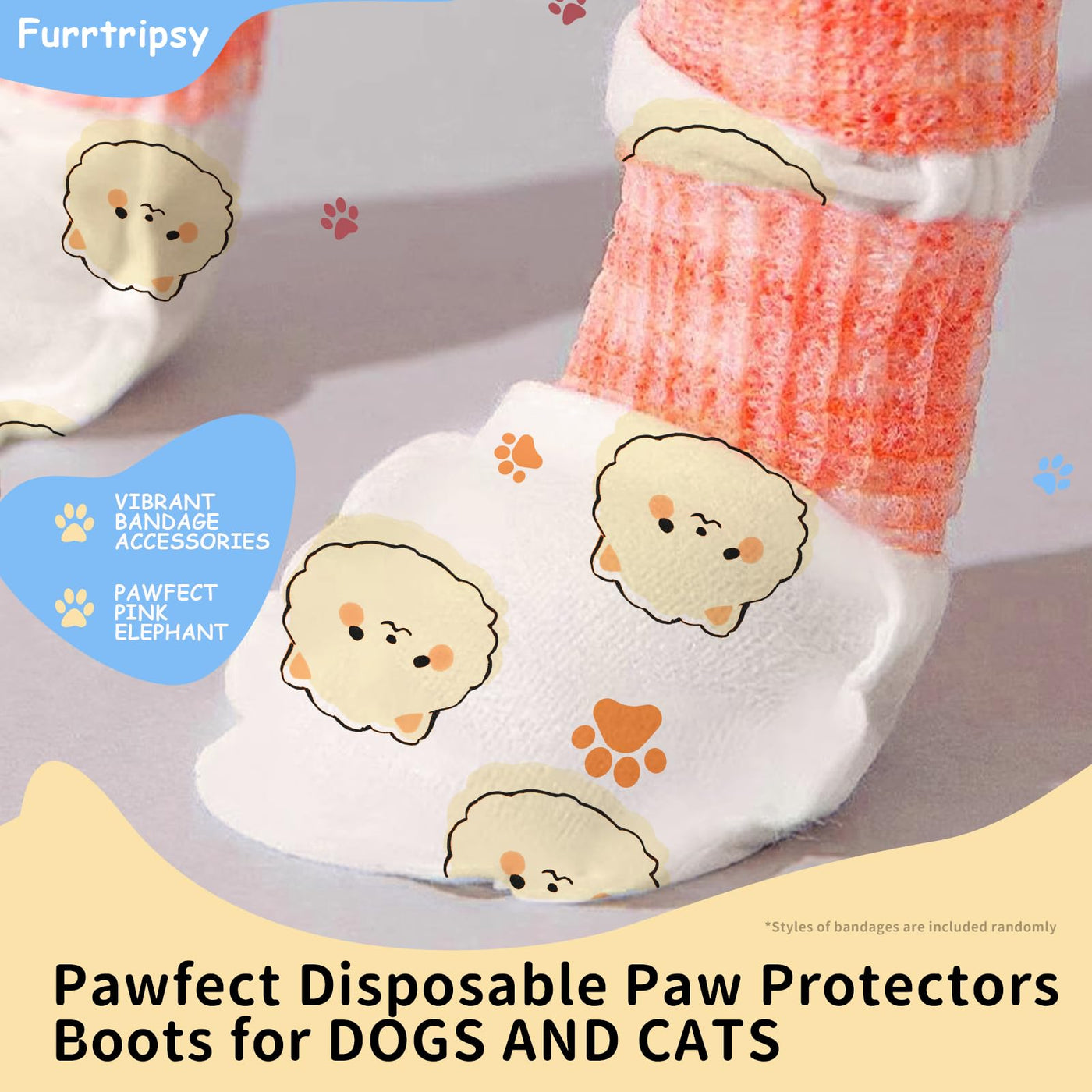 Furrtripsy Disposable Dog Booties For Dog Cats,32Pcs Pet Booties Waterproof And Breathable With Adjustable Bandage,Paw Socks Pro