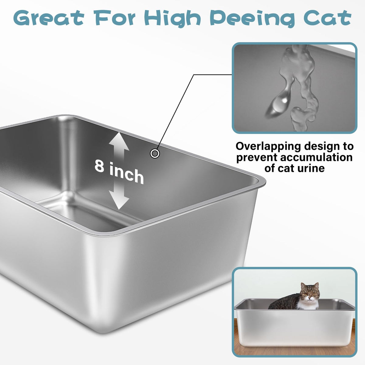Futam 2 Pack Stainless Steel Cat Litter Box, 23.6''X15.8''X8'' Xxl Stainless Steel Litter Box 8 Inch Deep, Extra Large Metal Lit