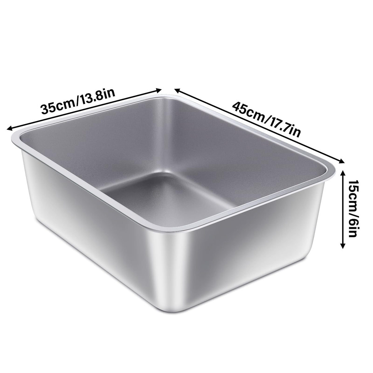 Futam Stainless Steel Litter Box, 17.7X13.8X6 Large Metal Litter Box For Kitty/Cat/Rabbits, Easy To Clean, Non Stick Litte