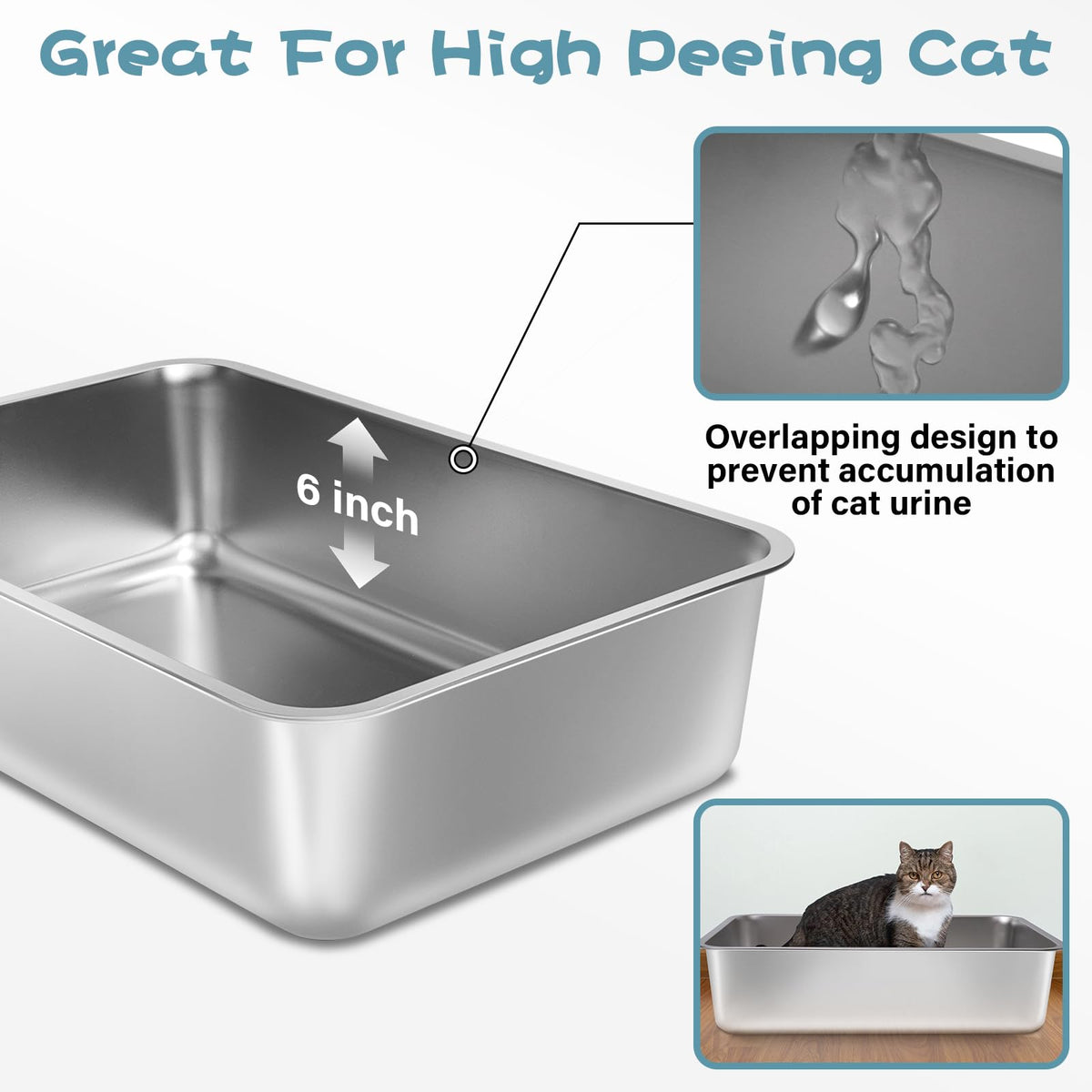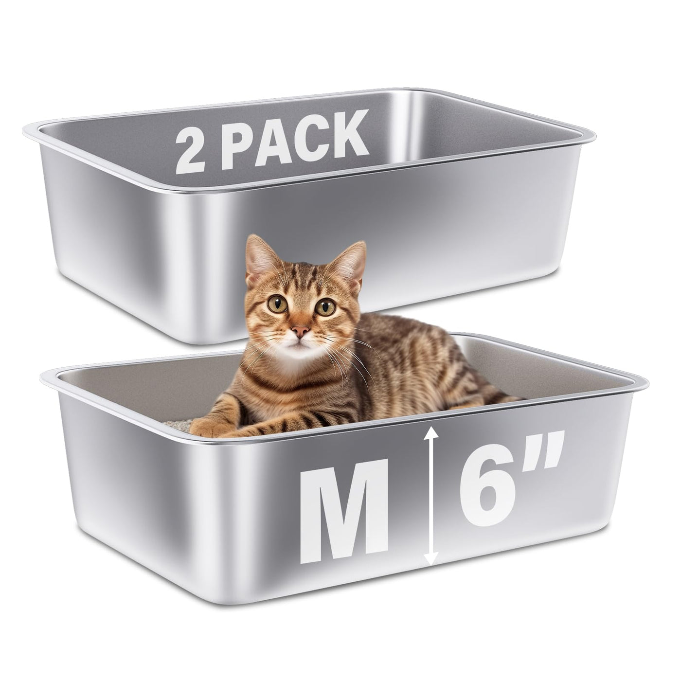 Futam Stainless Steel Litter Box 2 Pack,Medium Metal Litter Box For Kitty/Cat/Rabbits, Easy To Clean, Non Stick Litterbox No Sme