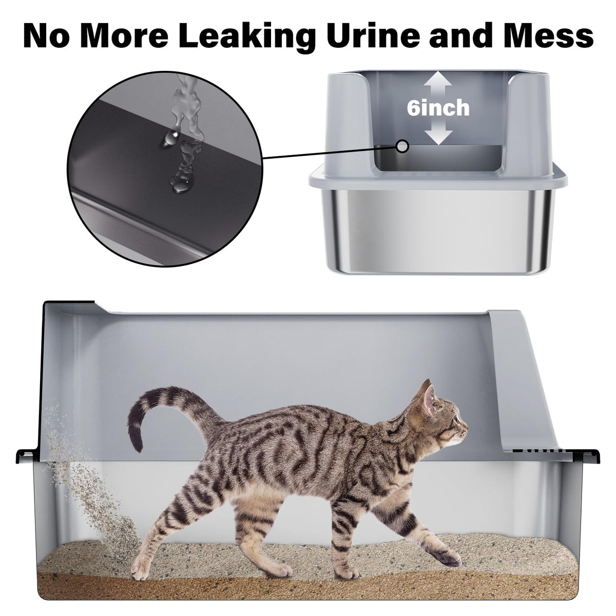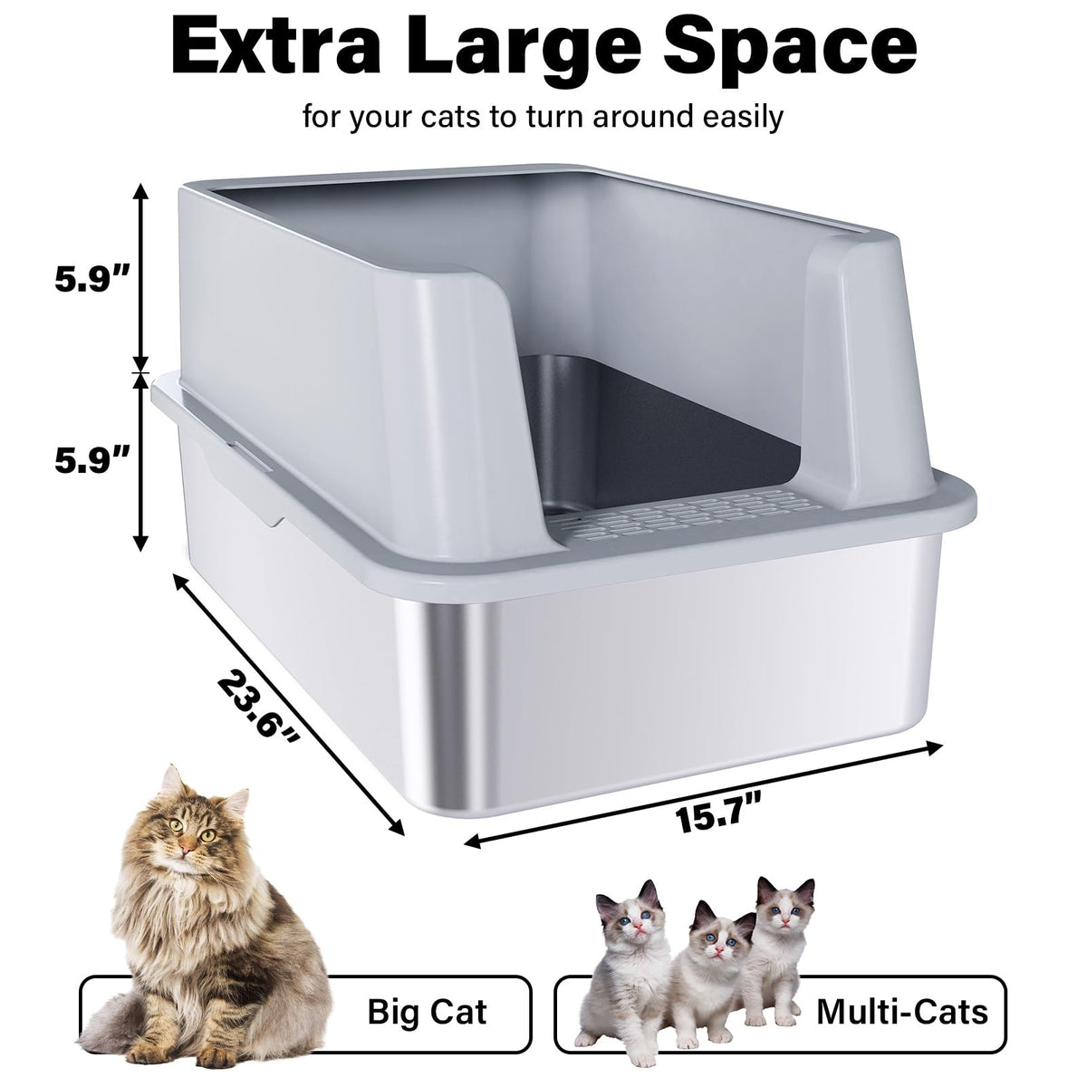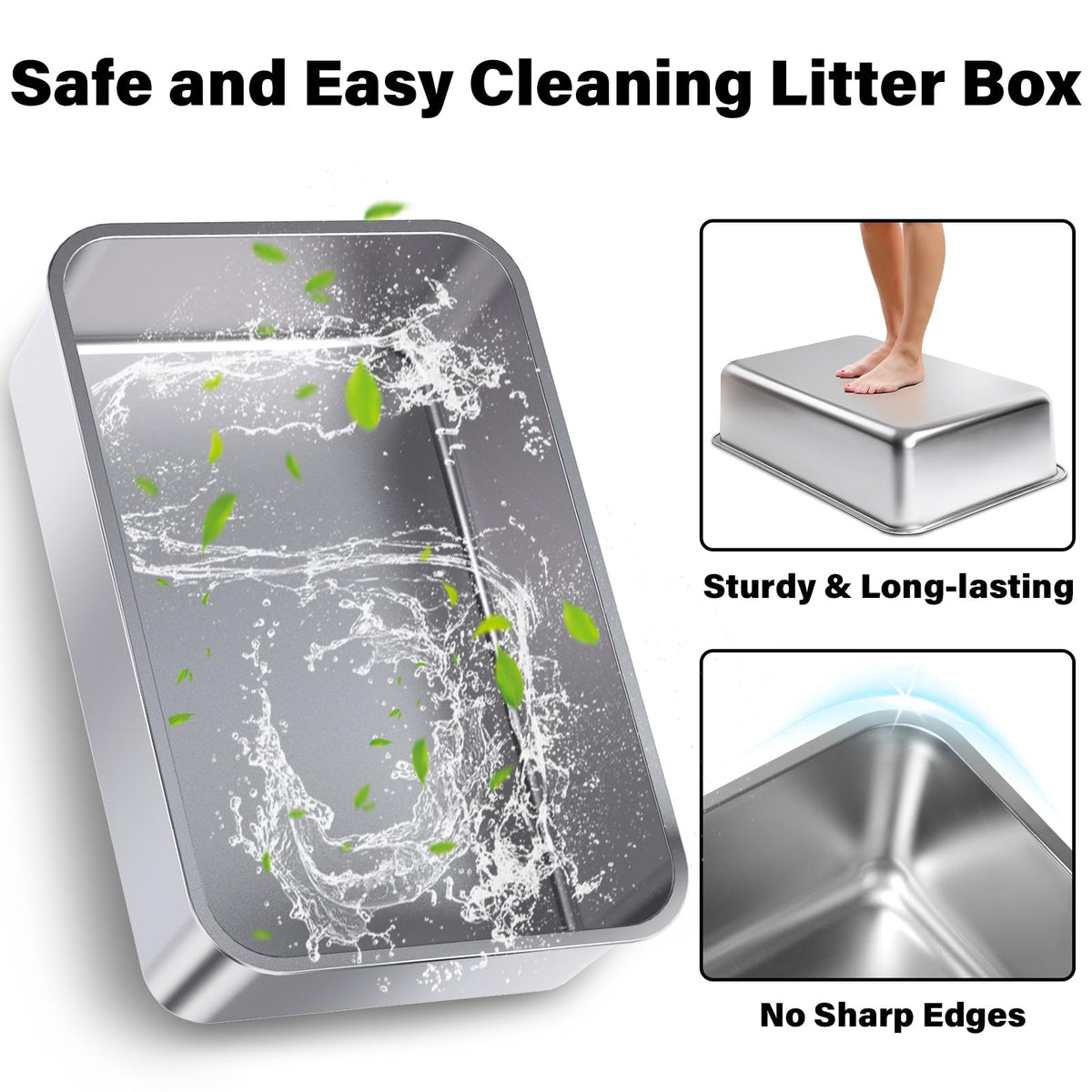 Futam Stainless Steel Litter Box With Lid, Xl Metal Litter Box With Scooper, Anti-Urine Leakage Litterbox High Sides For Big Kit