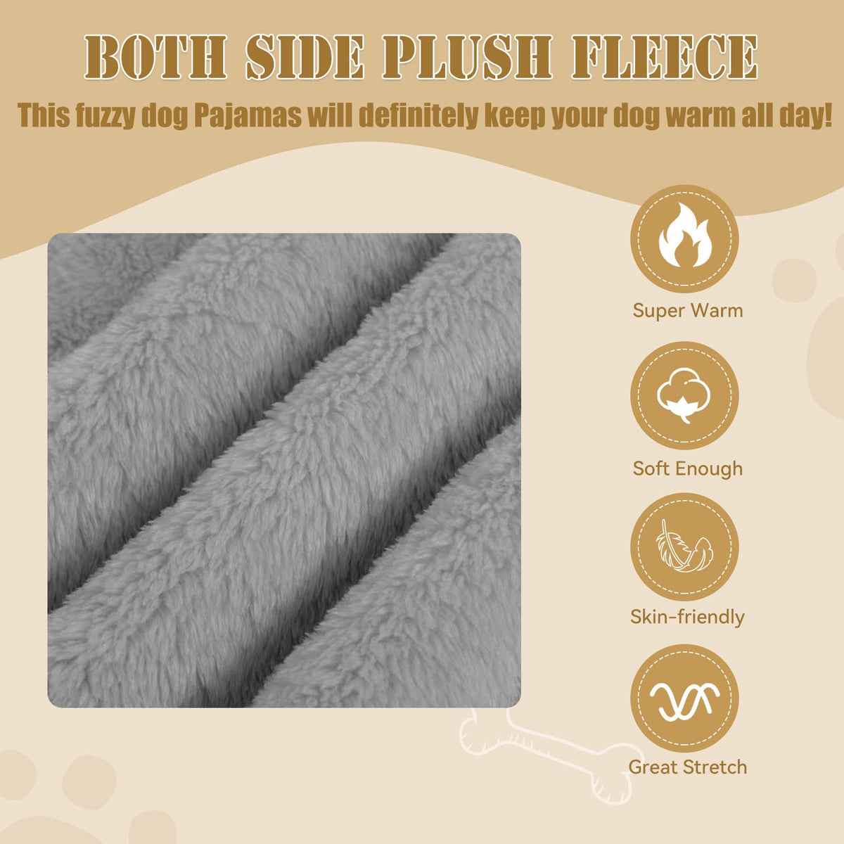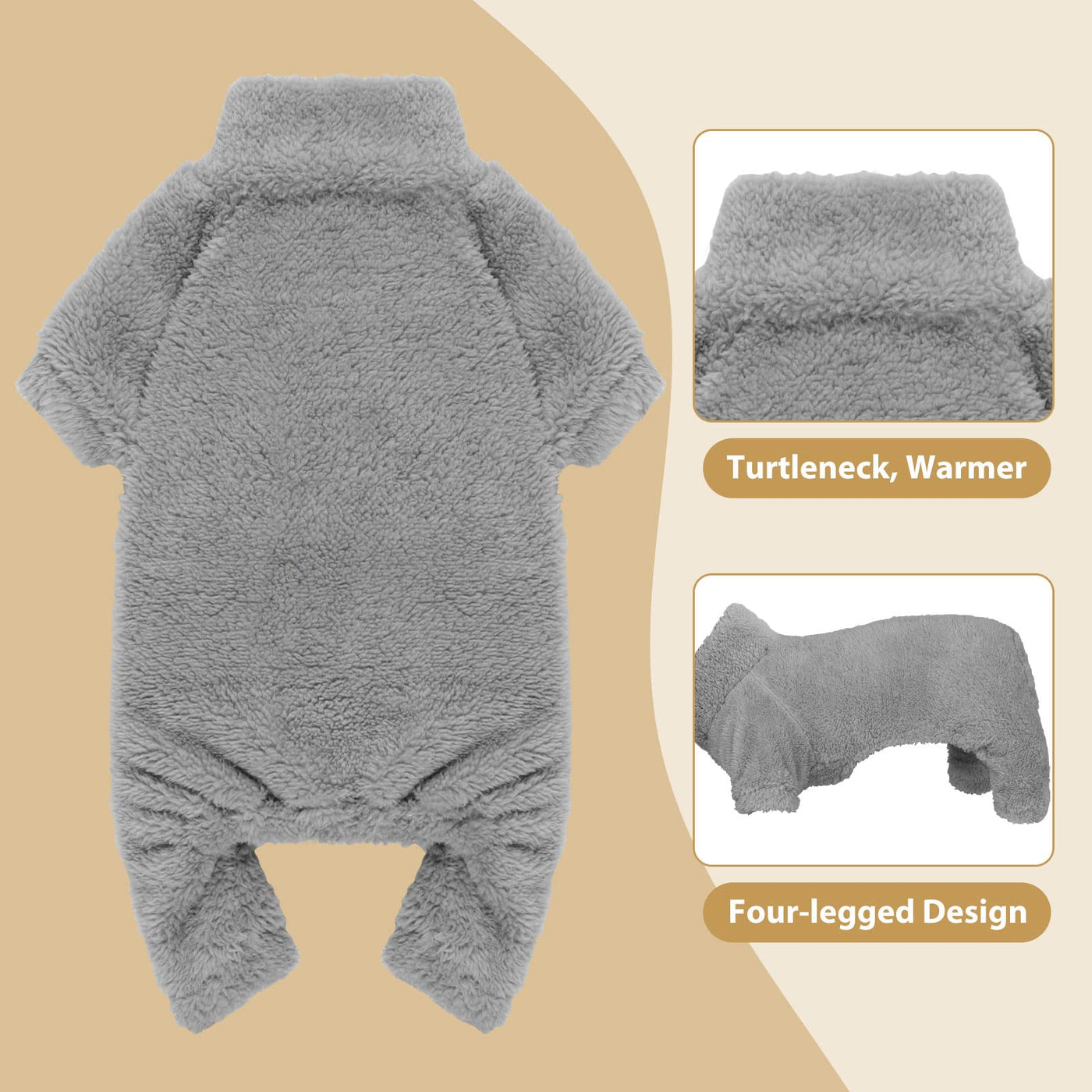 Fuzzy Dog Pajamas Turtleneck Dog Clothes Warm Soft Cozy Lightweight Dog Pjs Dog Sweaters For Small Dogs(Grey-Xs)
