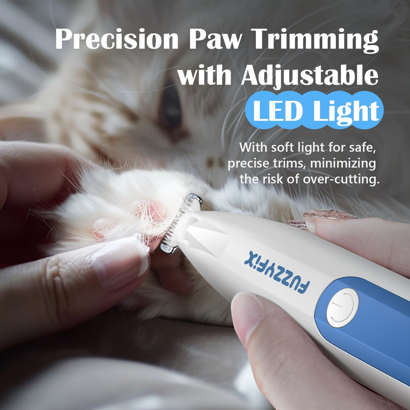 Fuzzyfix Dog Paw Trimmer With Led Light, Low Noise Paw Trimmer For Dogs, Type-C Rechargeable Pet Grooming Kit Dog Grooming Clipp