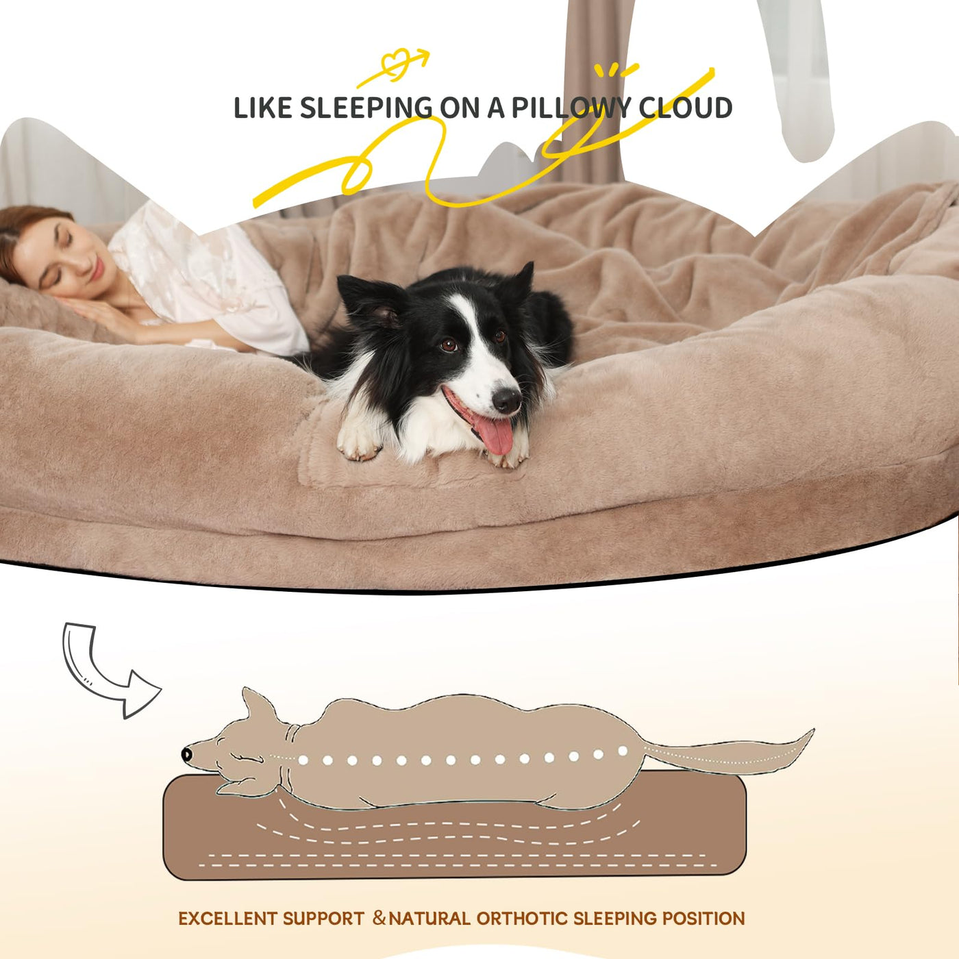 Human Dog Bed Is Suitable For A Variety Of Indoor And Outdoor Occasions, You Can Enjoy A Pleasant Indoor Leisure Time With Your Pet, Our Adult Dog Bed For Humans With Handles Can Be Easily Taken Outdoors To Enjoy Nature. We Use High Quality Foam, Which Is Supportive And Soft And Durable, With The Addition Of Our Convenient Designs, Such As The Side Of The Human Dog Beds Where We Have Installed Pockets For Easy Storage, And We Also Giving Away Blankets And Pillows For You And Your Furry Friends To Use Together!