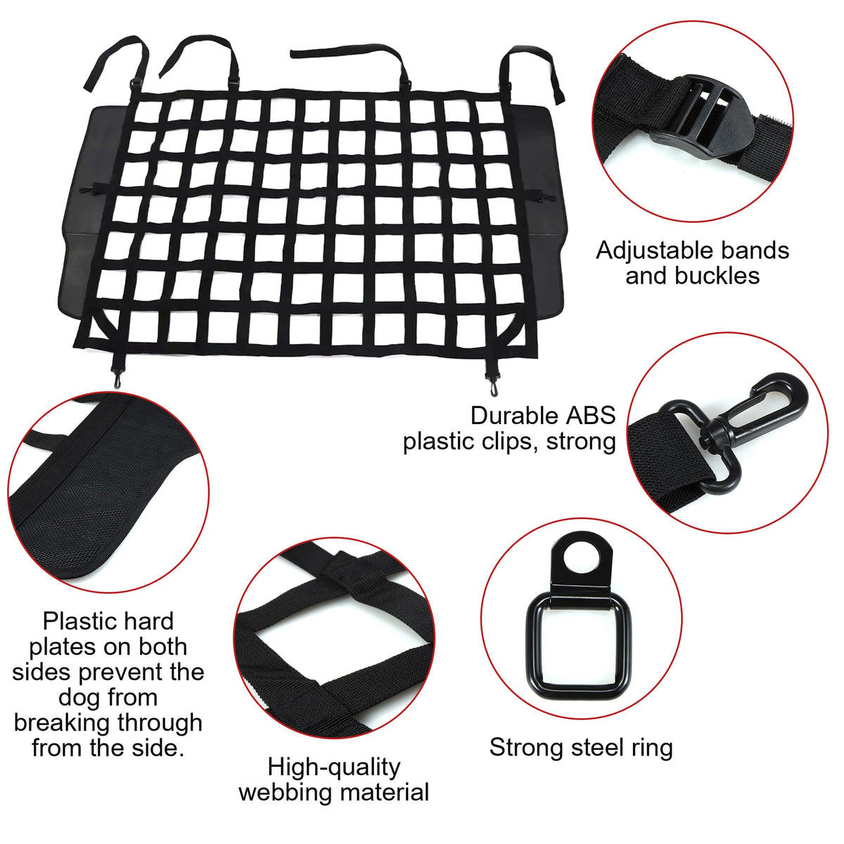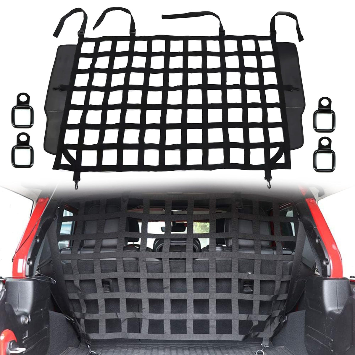G Dog Barrier Rear Cargo Net Compatible With Jeep Wrangler Accessories Jk Jl Unlimited Sahara 4-Door 2007-2025, Safety Mesh Pet