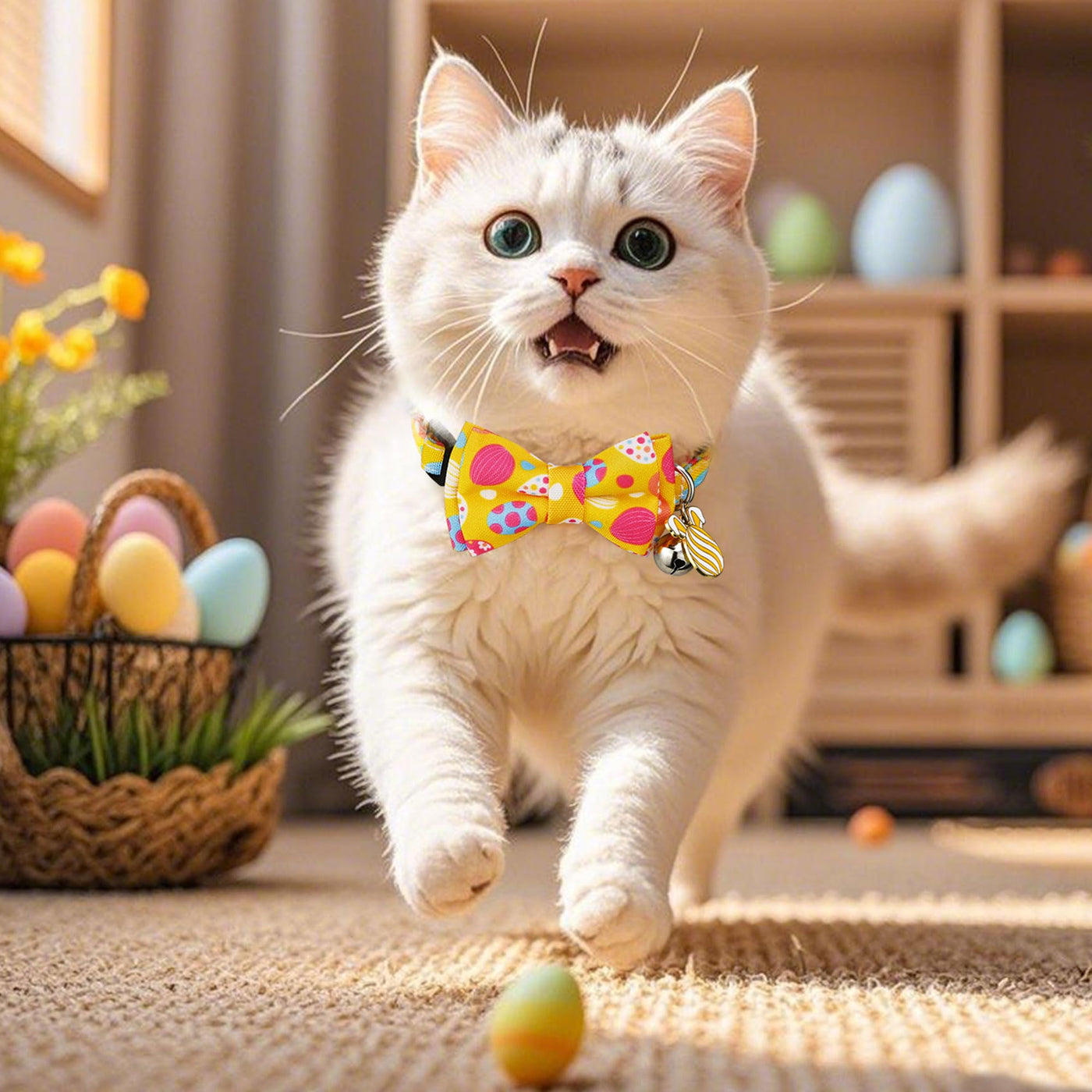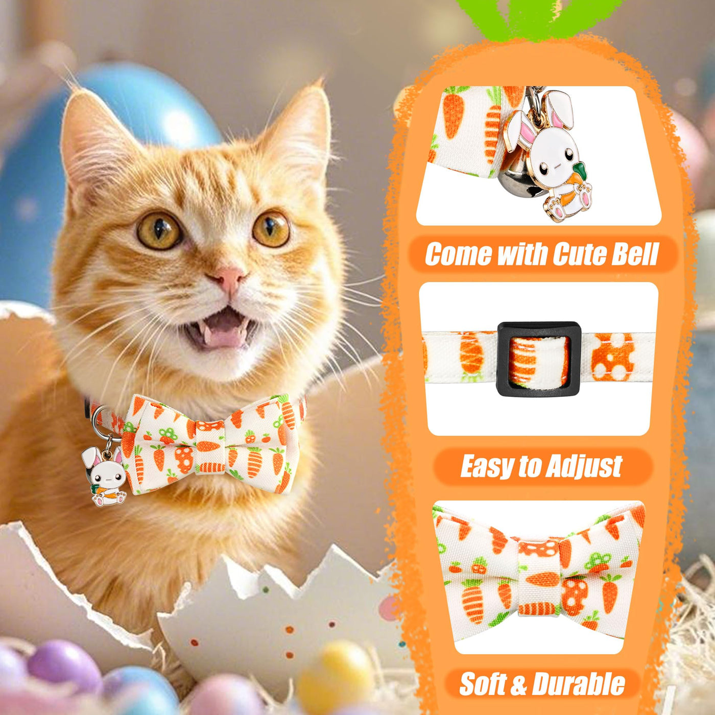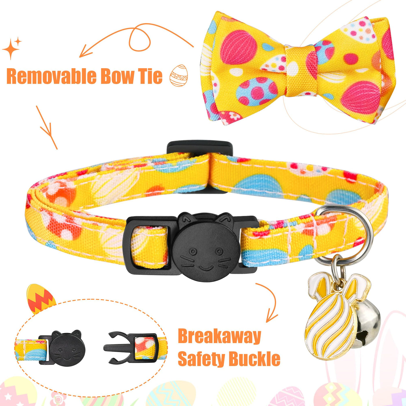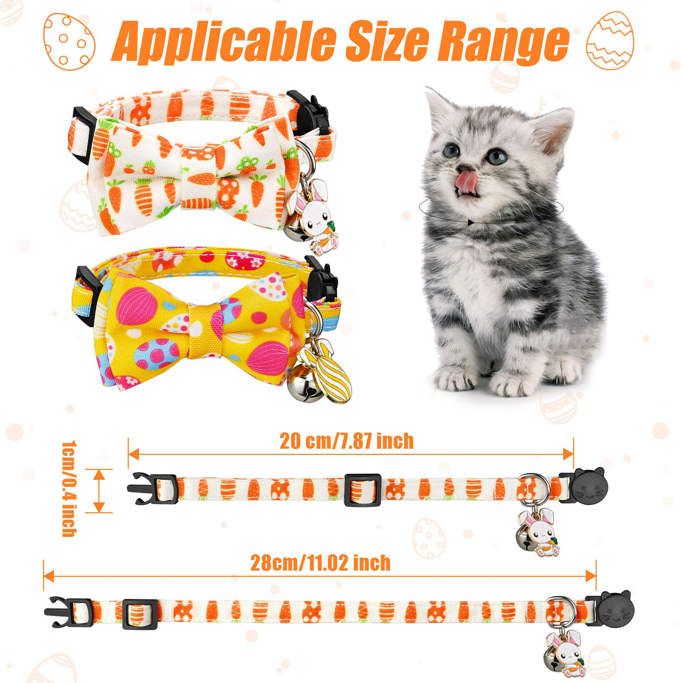 G-Ficu 2 Pack Easter Cat Collar Breakaway With Cute Bow Tie Bell Charm, Easter Eggs Carrot Holiday Collars For Girl Boy Cats Kit