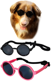 G001 Dog Cat Pet Costume Prop Round Sunglasses Medium Breeds 20-40 Lbs (Black + Hot Pink)
