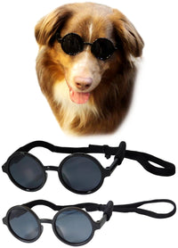 G001 Dog Cat Pet Costume Prop Round Sunglasses Medium Breeds 20-40 Lbs (Black + Matte Black)