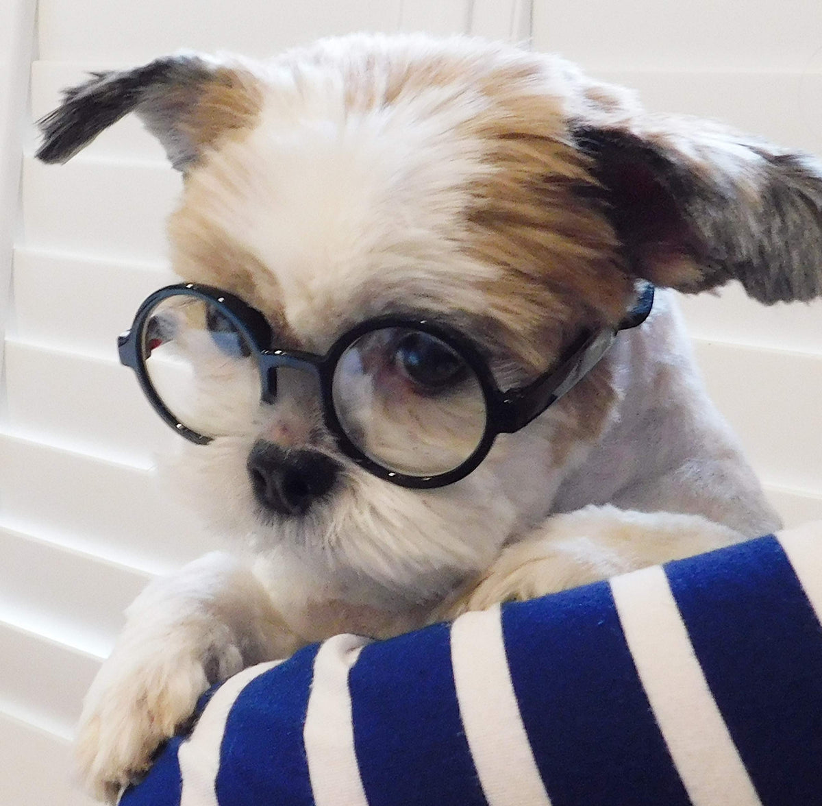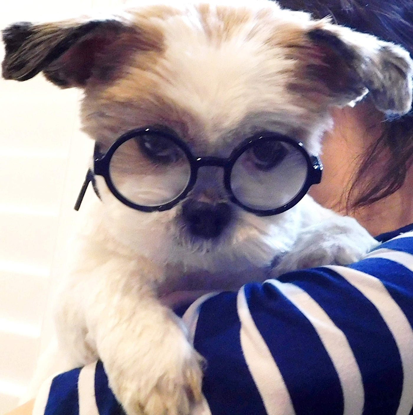 G015 Dog Cat Pet Costume Glasses Goggles For Small Breeds Up To 15Lbs (Round Black-Clear Lens)