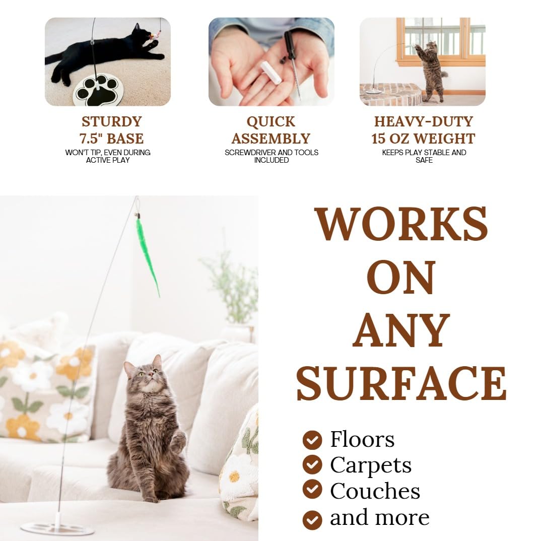 Self-Play Cat Toy With Suction Wand, Sturdy Floor Base & 9 Feather & Worm Attachments - Perfect For Indoor & Outdoor Cats Dual Play Options - Suction Cup & Round Base For Versatile Fun Designed For Maximum Entertainment, This Interactive Cat Toy Set Features Both A Dual Suction Cup Wand And A Heavy-Duty Round Base, Giving Your Cat Multiple Ways To Play. Stick The Suction Toy To The Floor, Window, Or Fridge, Or Let Them Enjoy A Sturdy, Ground-Level Chase With The Round Base Cat Toy. 9 Exciting Attachments - Feathers & Worms For Endless Play This Cat Toy Bundle Includes Six Colorful Feather Attachments And Three Worm Toys, Providing A Variety Of Textures And Movement Styles. Whether Your Cat Loves Chasing Feather Toys Or Prefers A Wiggly Worm Cat Toy, This Set Keeps Them Engaged And Stimulated. Perfect For Bored Indoor Cats & Home Alone Play If Your Cat Is Home Alone And Needs Mental Stimulation, This Cat Activity Toy Provides Independent Play That Keeps Them Entertained. The Suction Cup Cat Toy Offers High-Energy Fun, While The Round Base Cat Wand Attachment Allows For Stability And Full-Speed Swatting. Retractable Cat Fishing Pole For Interactive Play This Set Also Includes A 3-Section Cat Fishing Pole Toy That Extends Up To 43 Inches, Giving Your Cat Plenty Of Space To Jump And Chase. When Playtime Is Over, It Retracts To 16.3 Inches For Easy Storage-Perfect For Pet Parents Who Love Cat Teaser Wand Toys. Durable, Safe & Built To Last Made With High-Quality Materials, This Cat Toy Wand Suction Base And Sturdy Round Base Ensure Long-Lasting Play. Whether Your Cat Enjoys Feather Cat Toys, Bird Chaser Cat Toys, Or Cat String Toys, This Set Offers Safe And Interactive Fun. Juguetes Interactivos Para Gatos - Varita Con Ventosa, Base Resistente Y Plumas Este Juguete Autom Tico Para Gatos Incluye Una Base Estable Y Una Varita Con Ventosa Para M Ltiples Formas De Juego. Con Plumas Y Gusanos Intercambiables, Mantiene A Tu Gato Activo Y Entretenido. Easy Setup