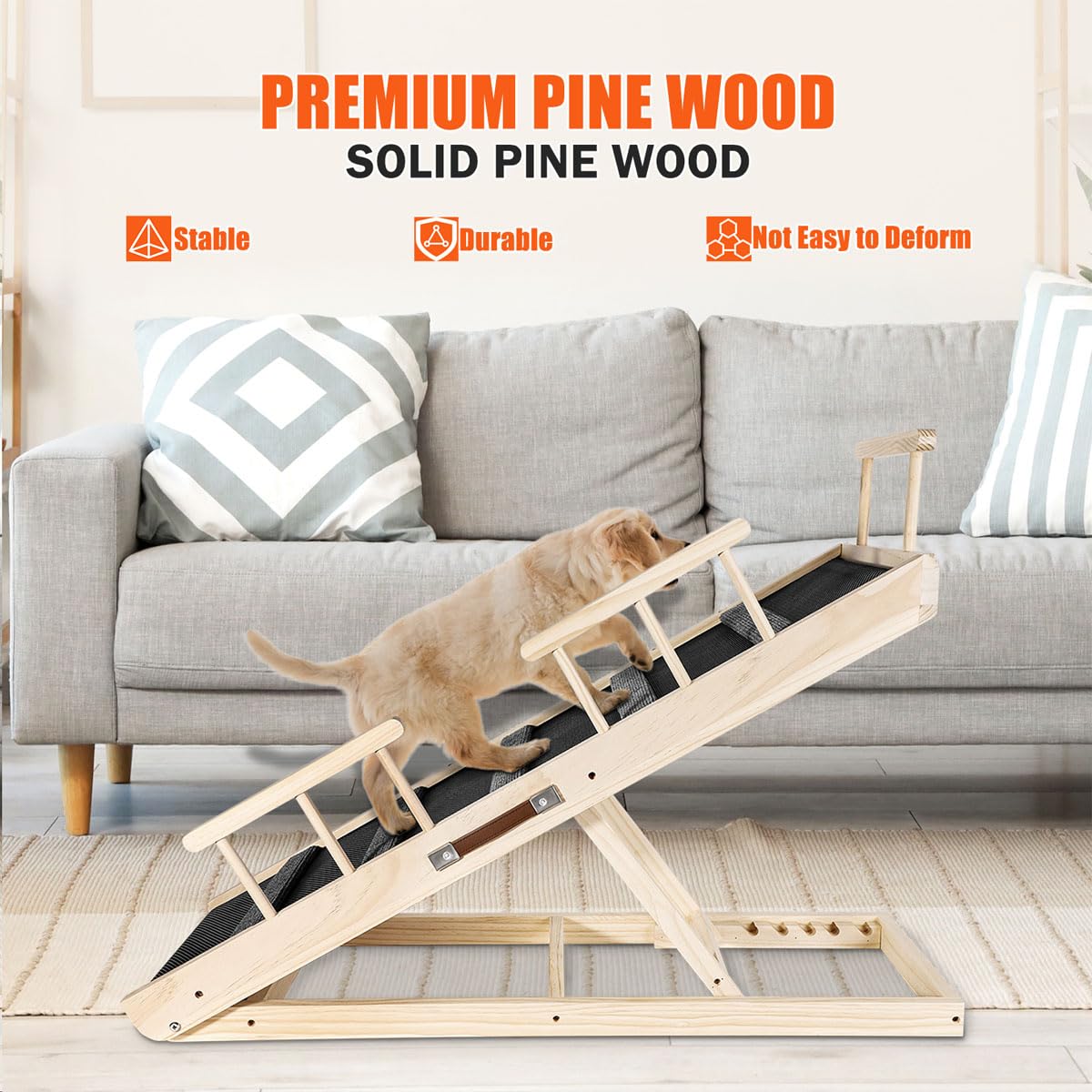 Galigali Dog Ramp, Adjustable Portable Folding Pet Ramp, Grey 43.3' Long Wooden With Non-Slip Traction Pad For Small Old Dogs A