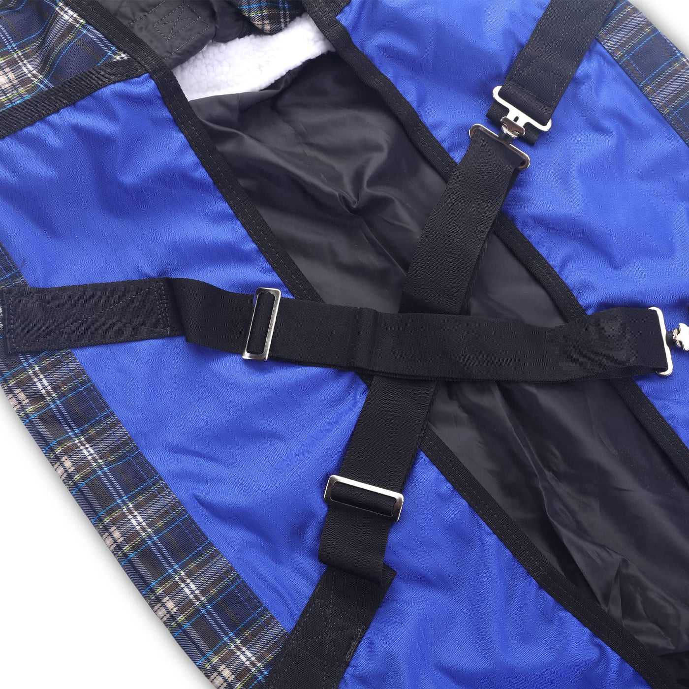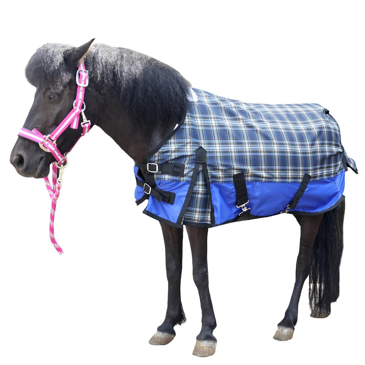 Gallopoff 600 Denier Ripstop Poly Waterproof Miniature Horse Sheet, 0G Fill Light Weight Mini Horse Turnout Rain Sheet Blueplaid