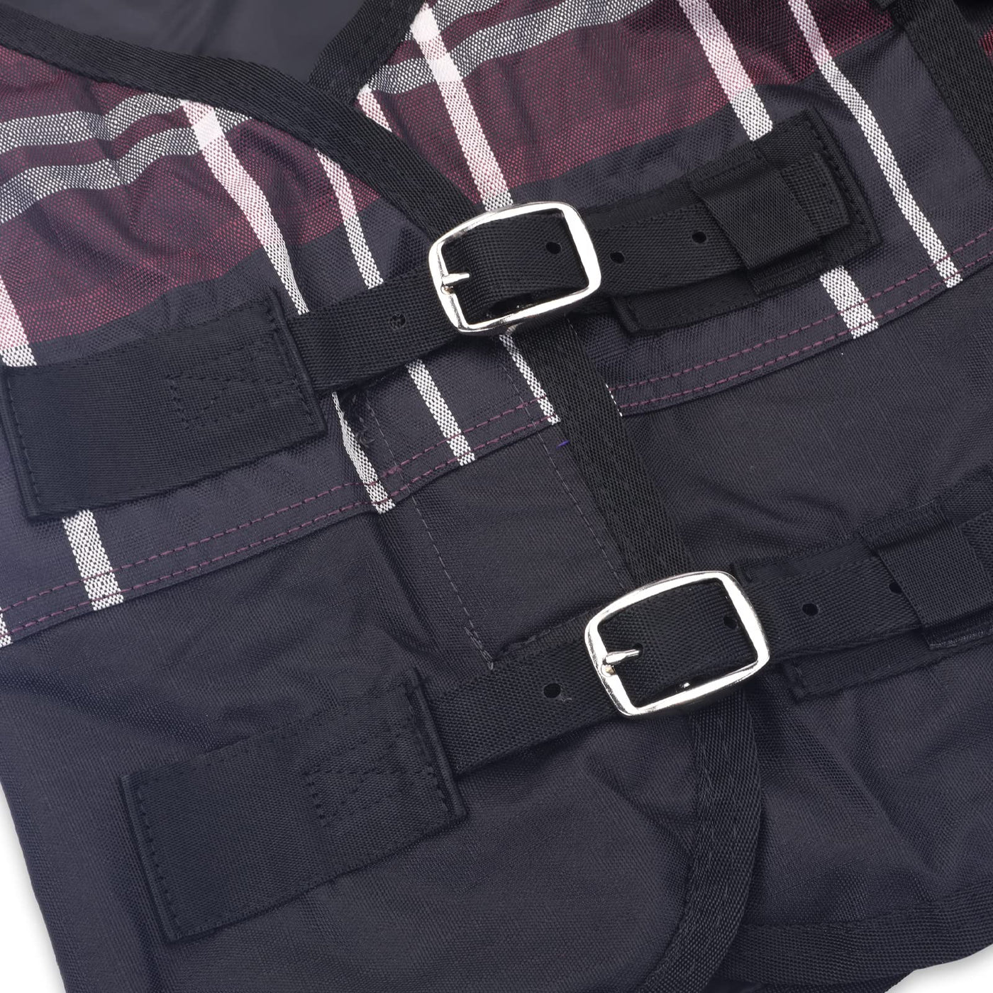 Gallopoff 600 Denier Ripstop Poly Waterproof Miniature Horse Sheet, 0G Fill Light Weight Mini Horse Turnout Rain Sheet Redplaid