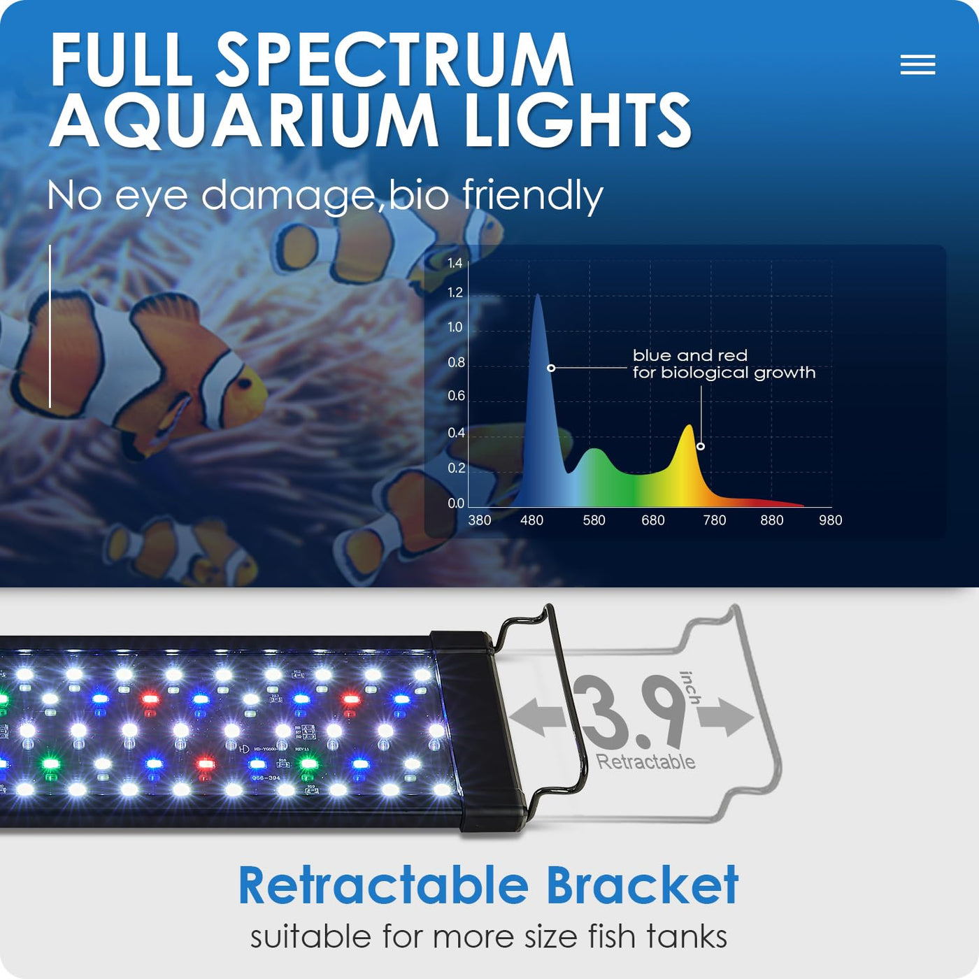 Q: Is this aquarium light suitable for all fish tank sizes?A: This aquarium light is designed for fish tanks ranging from 12 to 18 inches in size. Its retractable stand can accommodate tanks with and without lids, making it versatile for various setups.