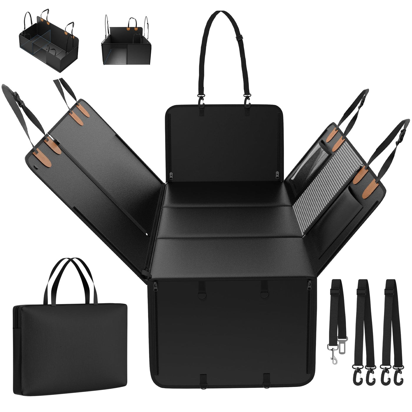 Indulge Your Furry Friend With Our Dog Car Backseat Extender Meticulously Crafted From Premium Pu Leather, Ensuring Unmatched Durability And Cleanliness. Say Goodbye To Dirt-Trapping Seats, As Our Scratch-Resistant Material Boasts A Smooth Bottom Base, Simplifying Upkeep And Extending The Life Of Your Seat. Experience Unparalleled Comfort With Our Sturdy Bottom Base Providing Ample Support For Up To 400 Pounds And An Extra 40% Of Space, Surpassing Regular Seats. The Detachable Board Design Eases Cleaning And Reduces Discomfort For Your Canine Companion During Car Rides. Embrace Tranquility With Our Foldable Design, Effortlessly Converting From A Three-Seat To A Two-Seat Configuration, Ensuring Privacy And Peace For All Passengers. Elevate Your Travels With The Innovative Features Of Our Dog Car Backseat Extender, Including A Mesh Observation Panel Offering Wide Views And Enhanced Airflow. Monitor Your Furry Friend Effortlessly, While Convenient Storage Pockets Keep Essentials At Hand. Versatile And Adjustable, Our Backseat Extender Fits Most Vehicles, Complete With Dog Safety Belts For Added Security, Making It Perfect For All Your Adventures, From Road Trips To Picnics. Packaging Dog Backseat Extender *1 Storage Bag *1