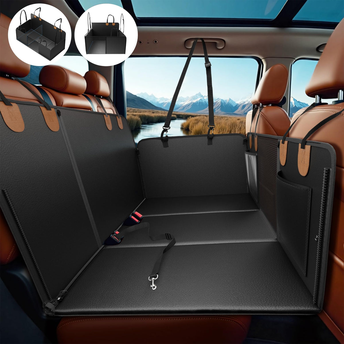 Gamkii Dog Car Seat Cover, Waterproof Backseat Extender With Hard Bottom & Storage Pocket, 3 Or 2 Seats Available, Dog Car Hammo