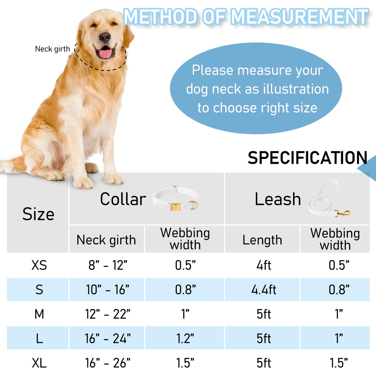 GAMUDA Velvet Dog Collar and Leash, Super Soft and Smooth, Heavy Duty Gold Buckle, Comfortable and Easy to Clean, Adjustable Col