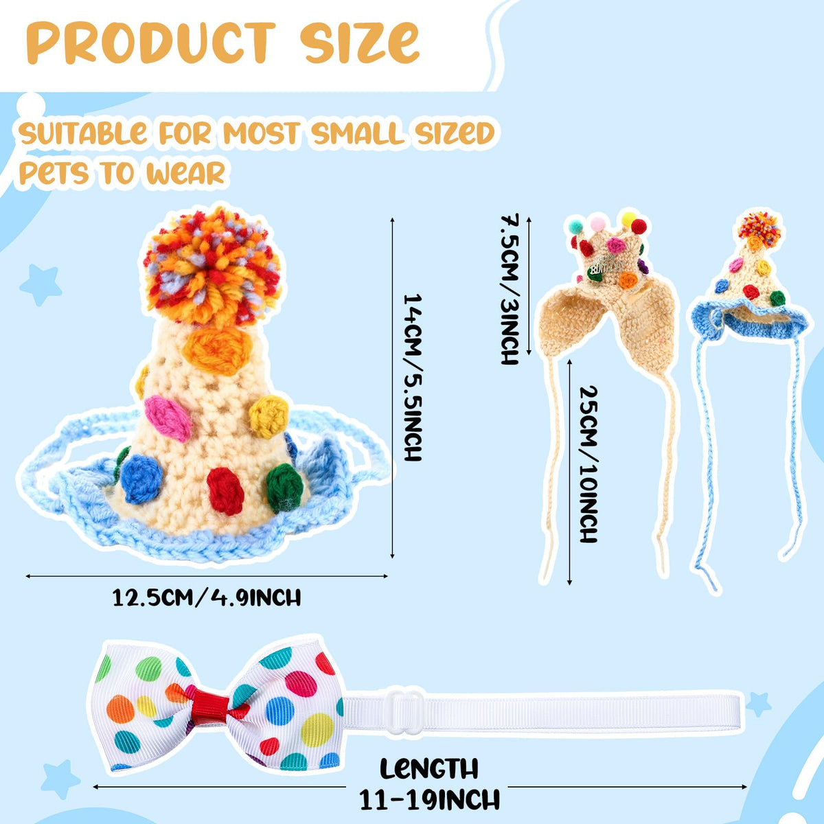 Ganeen 4 Pack Cat Birthday Hat Crochet Happy Birthday Cat Party Outfit Small Animal Top Hats Headband Rabbit Bow Tie Pet Hat Hea