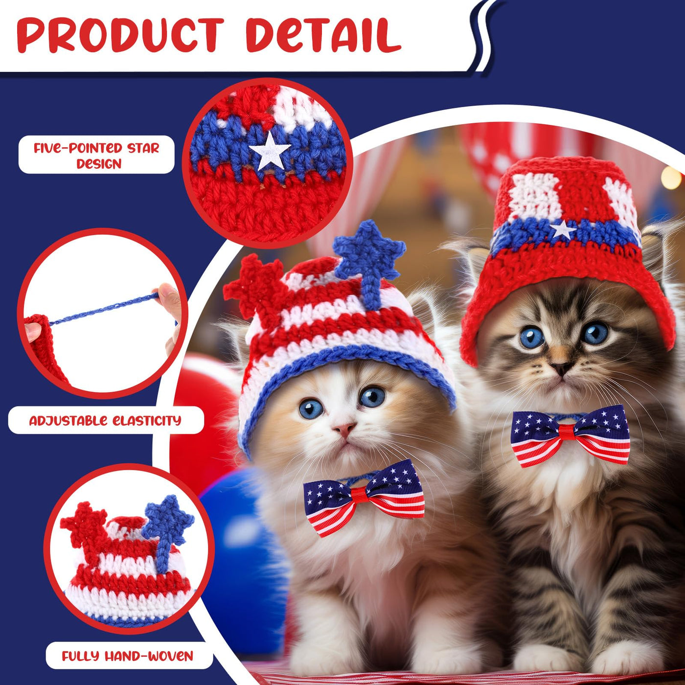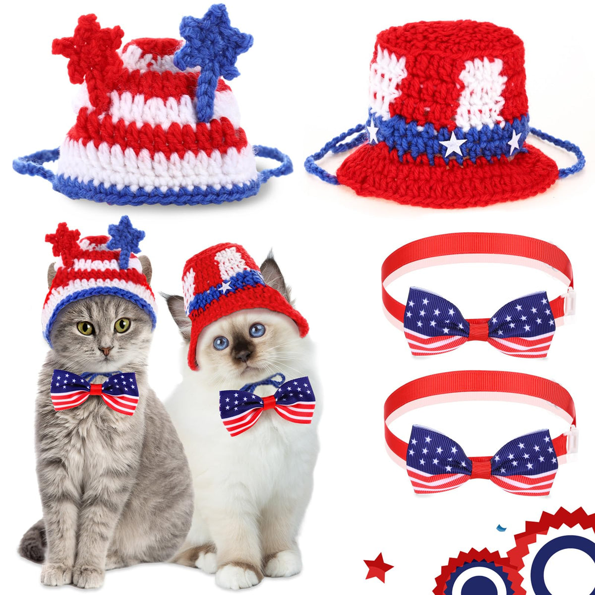 Ganeen 4 Pcs Independence Day Cat Costume 4th of July Pet Hat Headband American Flag Bow Tie Dog Cap USA Small Animal Top Hats N