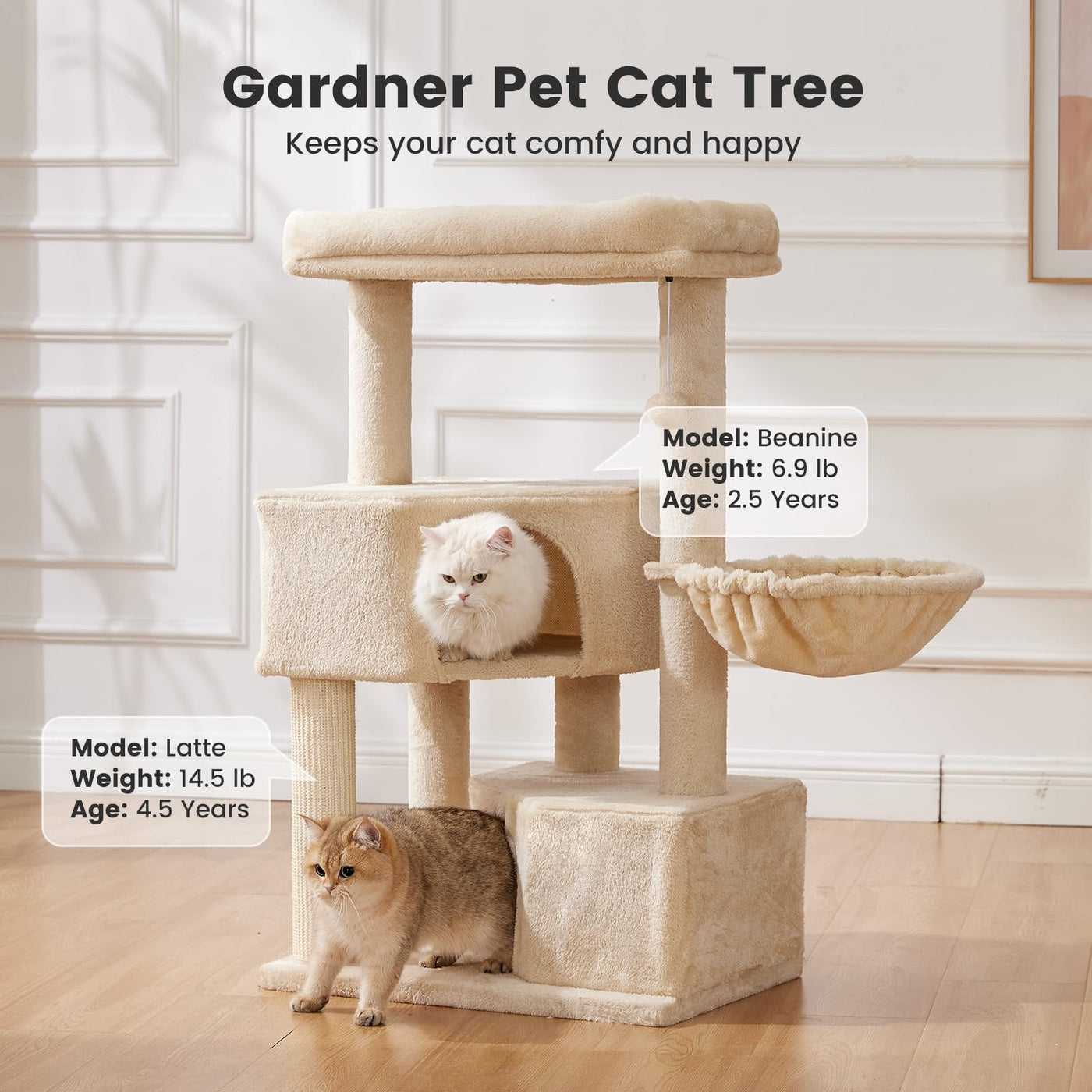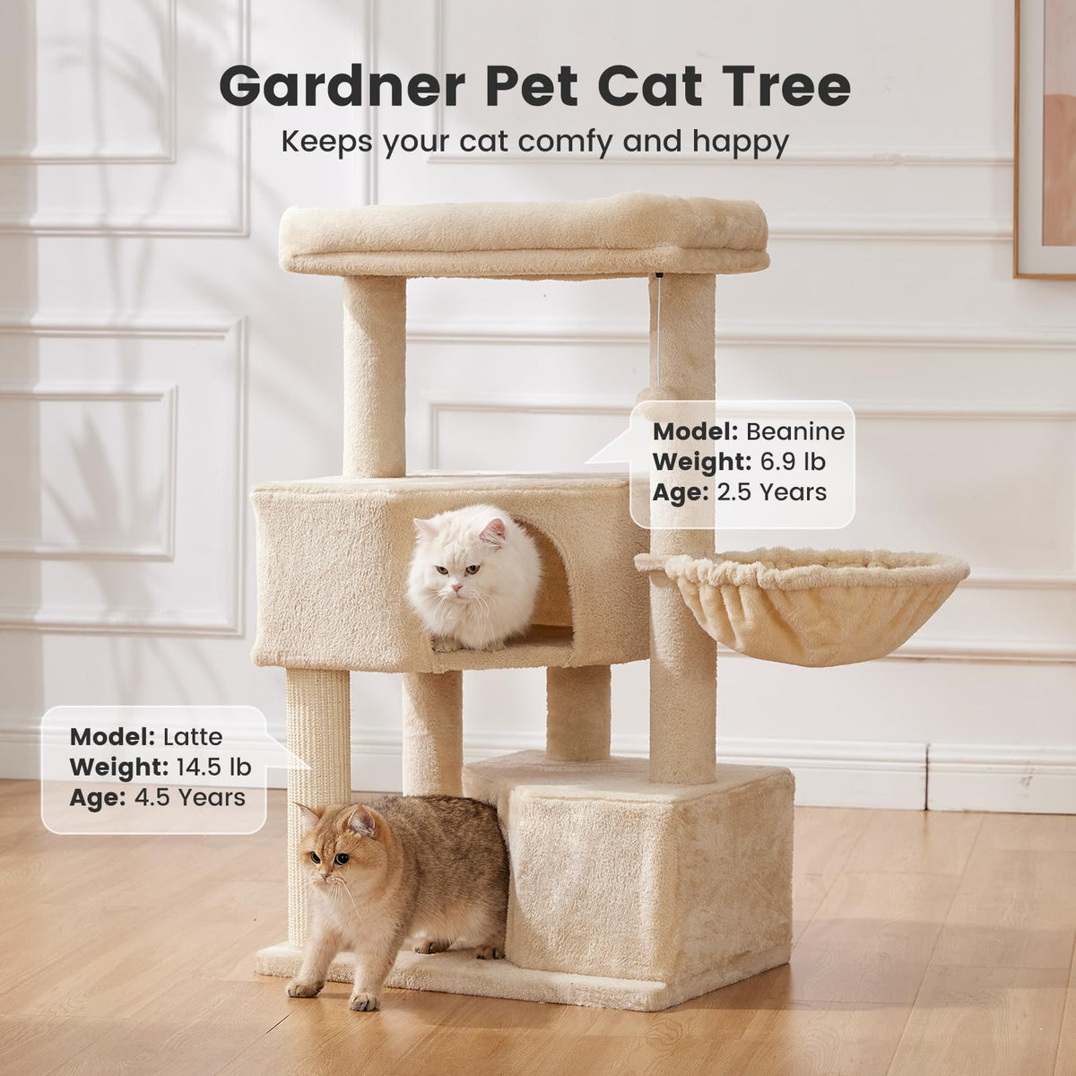 ? Overall Size:23.23''X17.32''X41.34''H. The Bigger Base Board Can Increase Cat Tree'S Stability. ?? Easy To Assembly : Watch The Video!Even First-Time Cat Parents Can Set It Up Before Coffee Brews! ??? Built For 20Lb Giants & Multi-Cat Chaos: Holds 20Lbs. Your Maine Coons Can Go Wild.