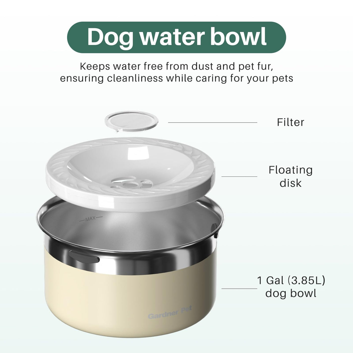 Gardner Pet Dog Bowls 1 Gallon (3.85L) Stainless Steel No Spill Water Bowl, Slow Water Feeder Metal Dog Bowls, Spill Proof Water