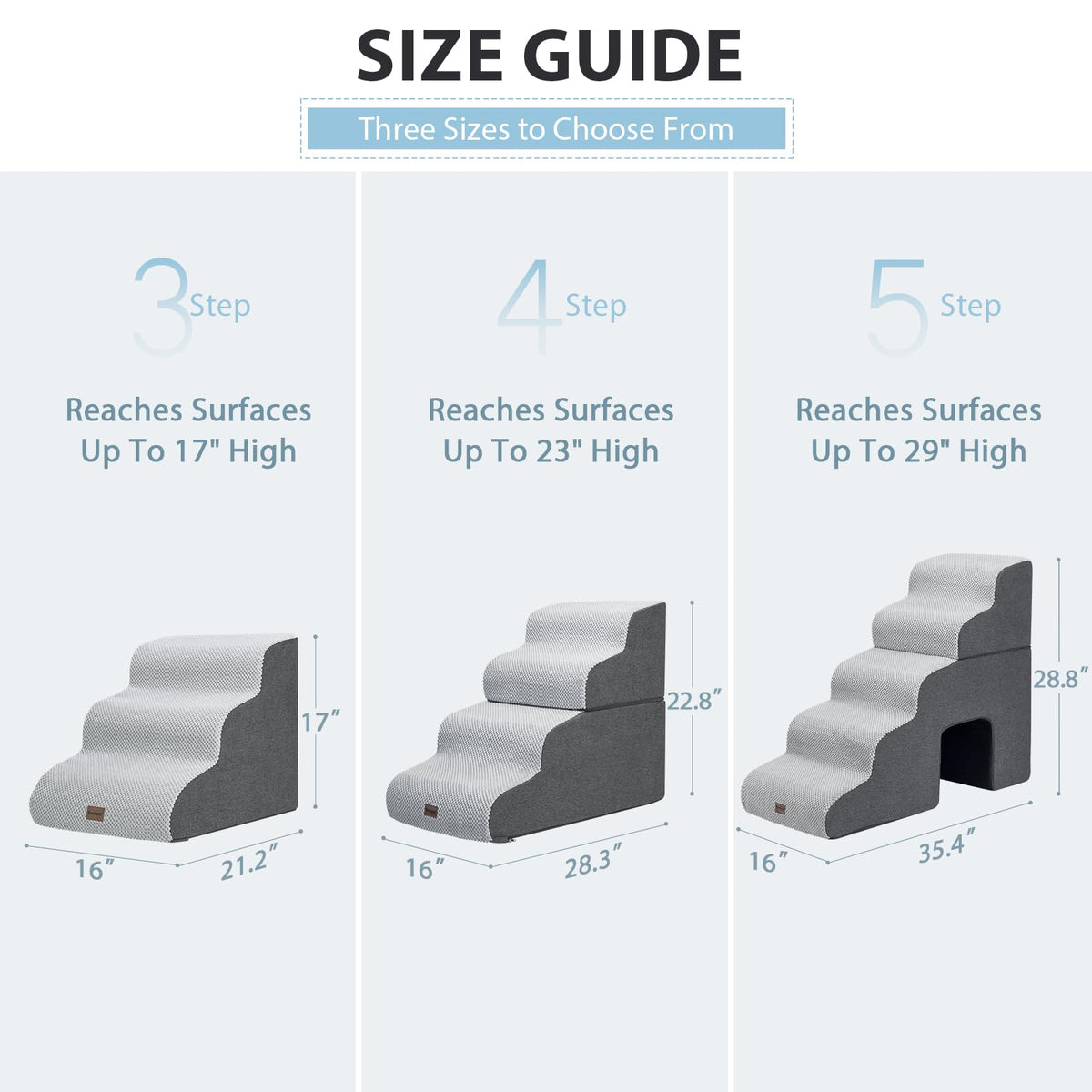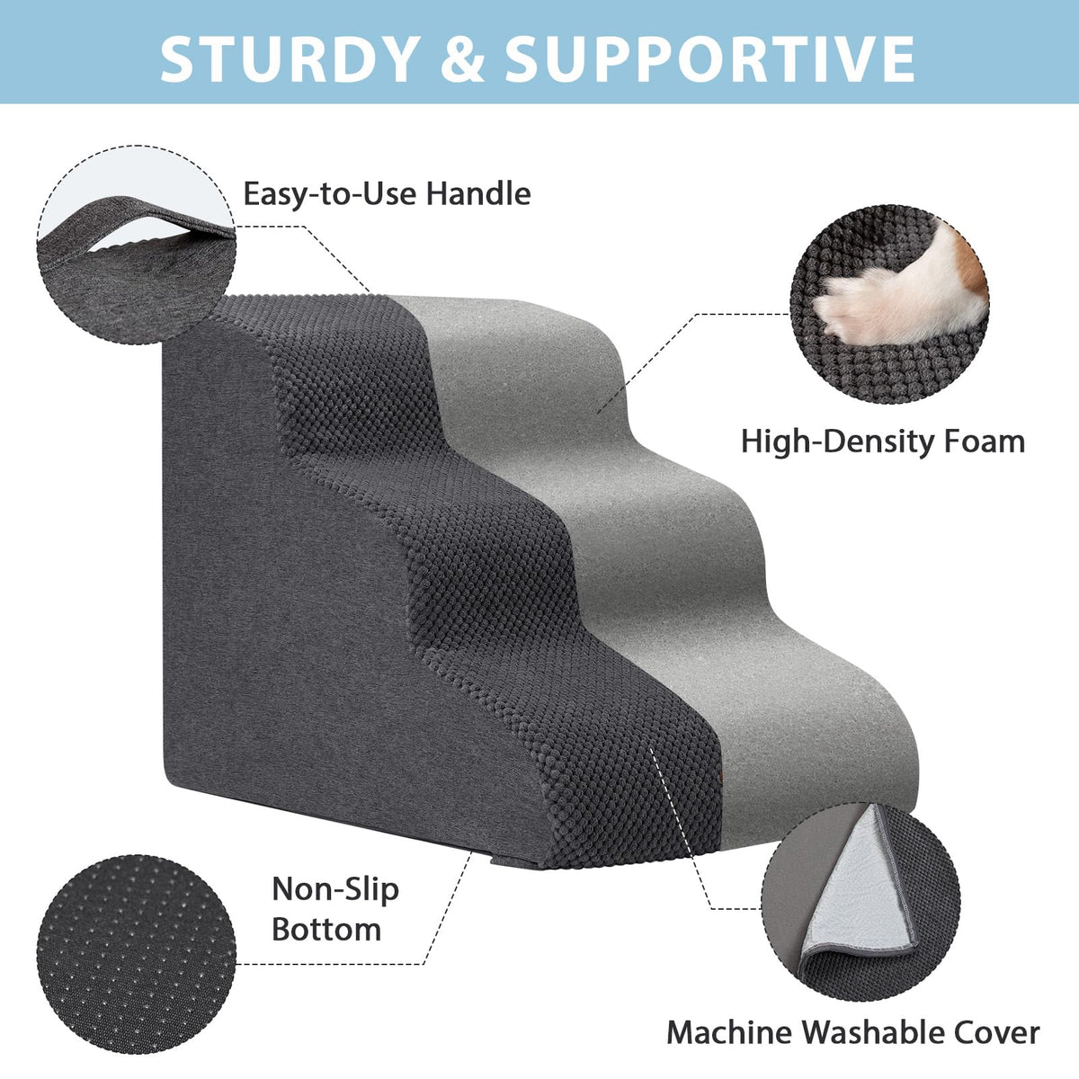 Garnpet Dog Stairs For Couch Sofa And Chair, 3-Step Dog Steps For Small Dogs And Cats, Non-Slip Indoor Pet Step, Light Grey