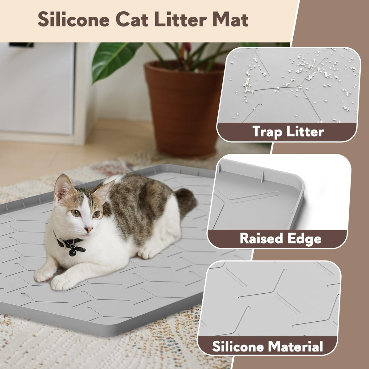 Garoopion Cat Mat For Litter Box, Large 34'' X 22'' Cat Litter Mat, Waterproof Silicone Pad For Floor, Gray