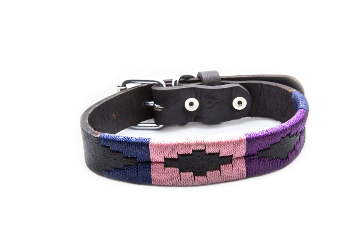 'The Cali Girl' Leather Dog Collar Is A Highly Popular Design In Our Luxurious Dog Accessories Collection. This Collar Is For Big Dogs And Is Extra Wide. The Collar Has Been Stitched With Soft Pink And Purple Navy Colored Threads.