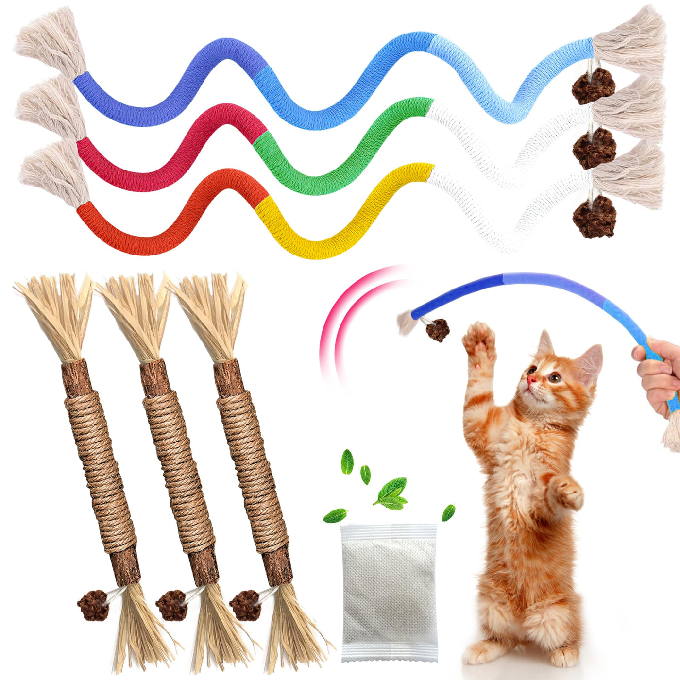 Gbsyu Cat Toys Chew Rope & Silvervine Sticks For Bored Indoor Adult Cats, 6Pcs Interactive Catnip Toys For Cats With Refillable
