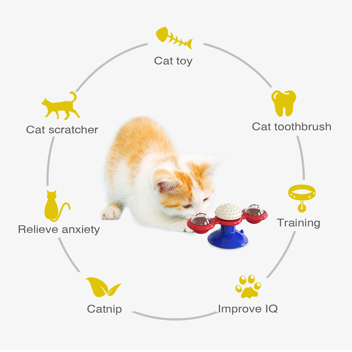 Gbsyu Interactive Windmill Cat Toys With Catnip : Cat Toys For Indoor Cats Funny Kitten Toys With Led Light Ball Suction Cup?Cat Nip Toy For Cat Chew Exercise (Multi-Colored)