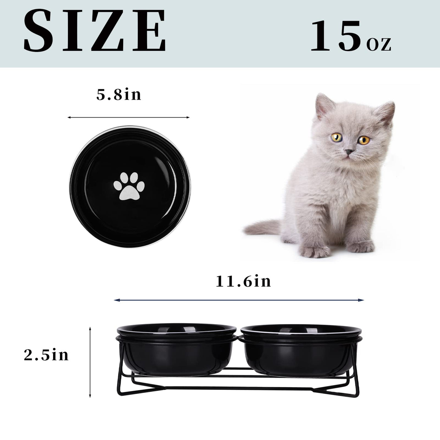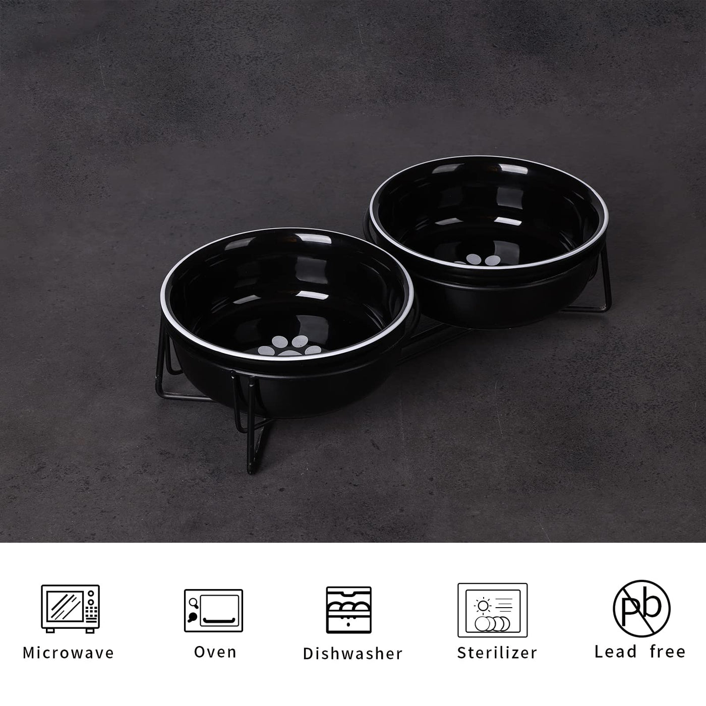 Gdcz Ceramics Raised Cat Small Dog Bowls With Heighten Metal Stand,15 Ounces (Black)
