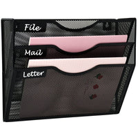 Gdindinfan 3 Pockets Mesh Hanging Wall File Holder Organizer Wall Mounted Paper Magazine Rack, Black