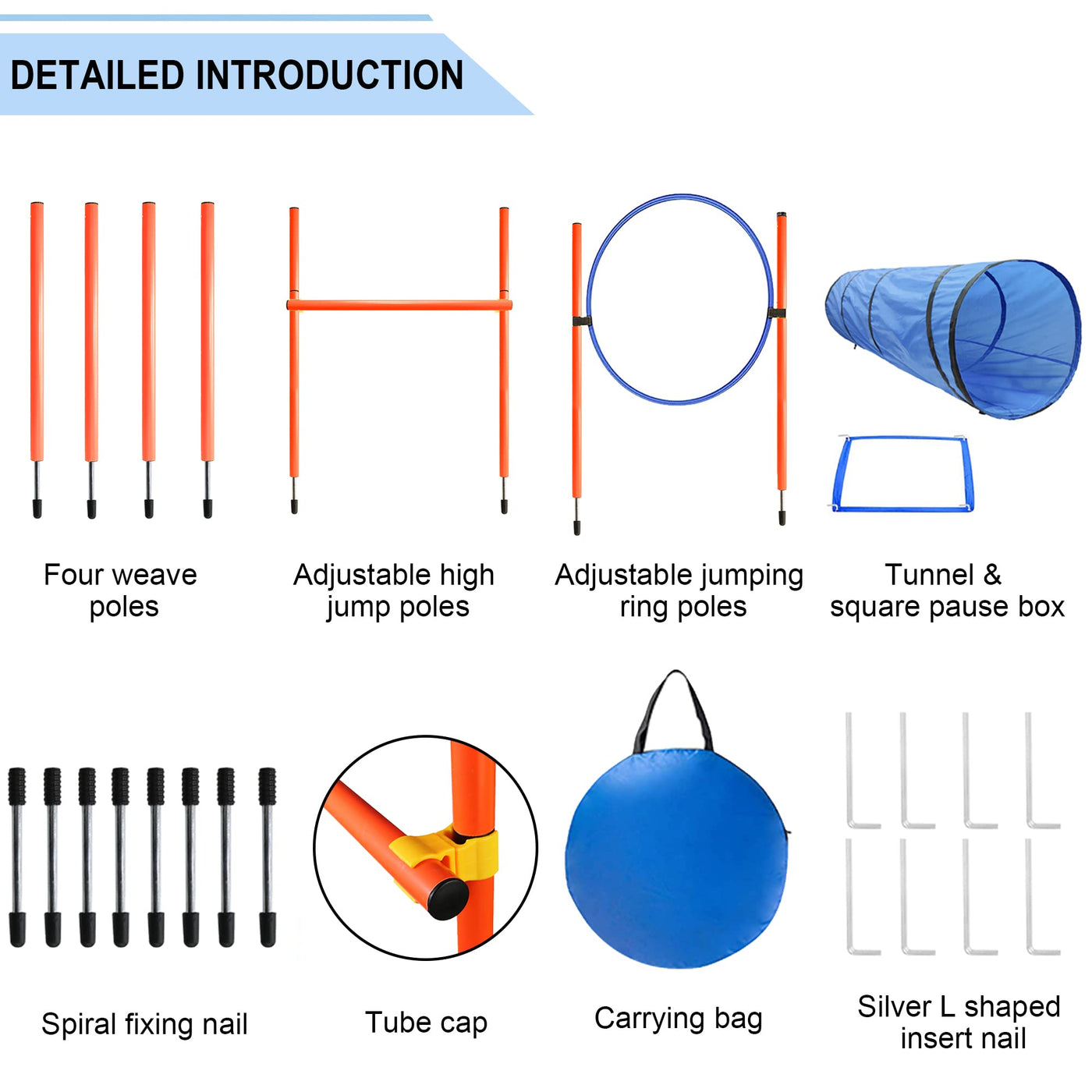 Geerduo Dog Agility Training Equipment, Obstacle Agility Training Starter Kit For Doggie, Including Tunnel, 13 Weave Poles, Adju