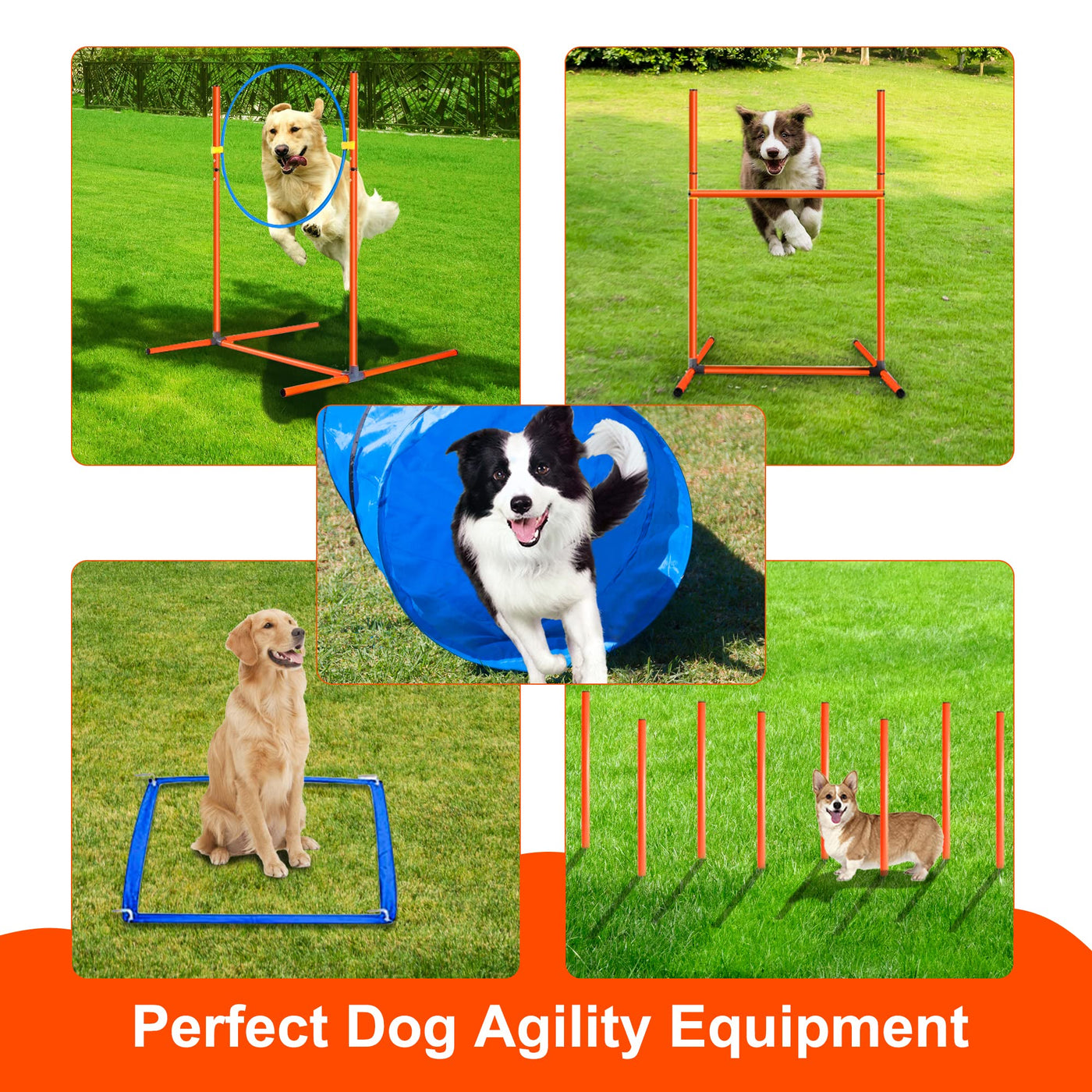 Geerduo Dog Agility Training Equipment, Obstacle Agility Training Starter Kit For Doggie, Including Tunnel, 27 Weave Poles, Adju