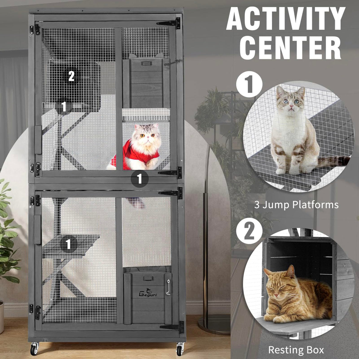 Geguri Insulated Cat House Outdoor Weatherproof Feral Cat Shelter For Winter Large Wooden Enclosure With Escape Door