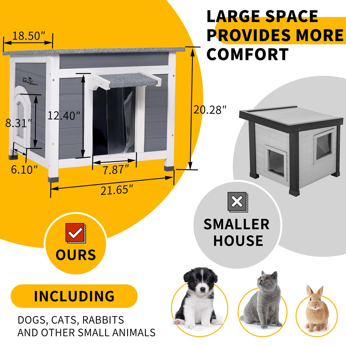Geguri Outdoor Cat House, Weatherproof Feral Cat Shelter For Winter